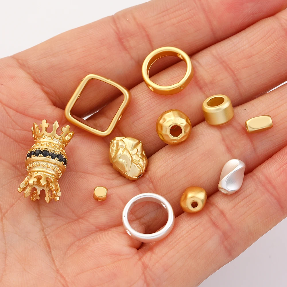 Кубические бусины для изготовления ювелирных изделий, медные золотые матовые бусины для браслетов сделай сам, геометрический ободок, Золотая Корона, аксессуары, бусины