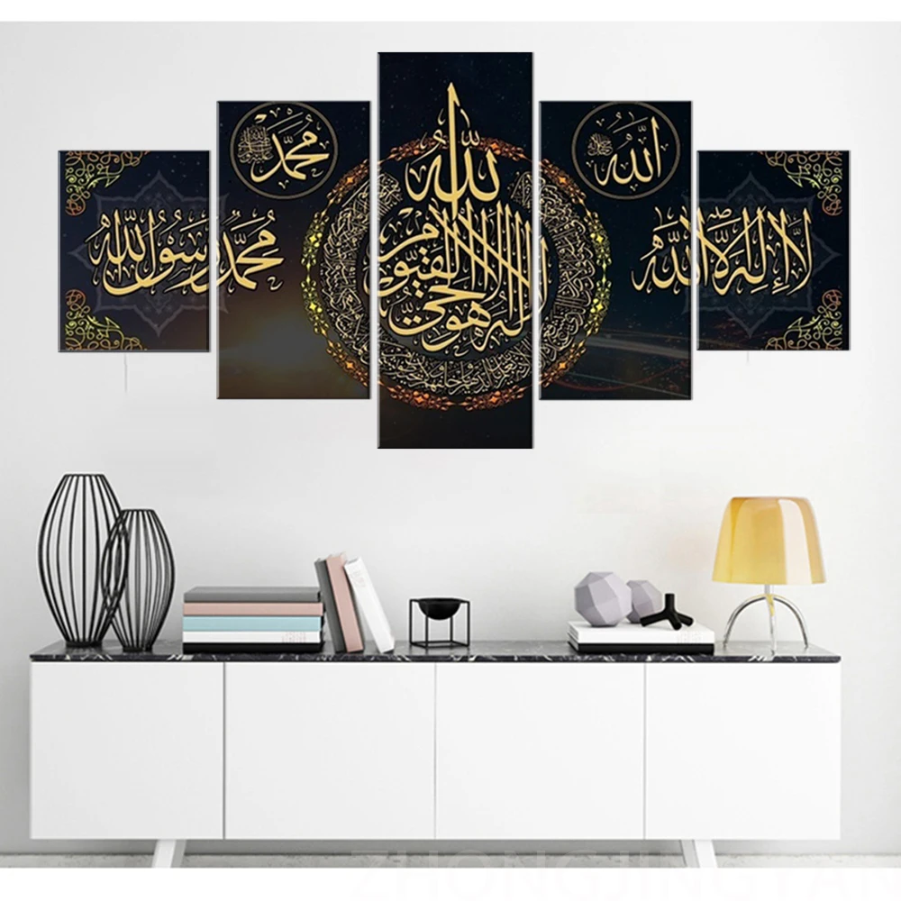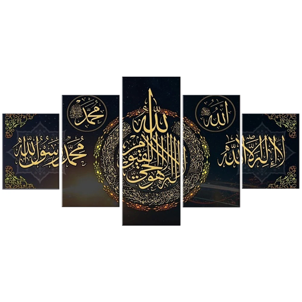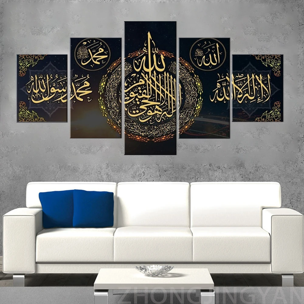 5 шт. Серебристая картина маслом на тему мусульманского ислама, Аллах, коранов, Модульная картина HD, религиозный плакат на холсте, настенное искусство, художественное оформление для дома