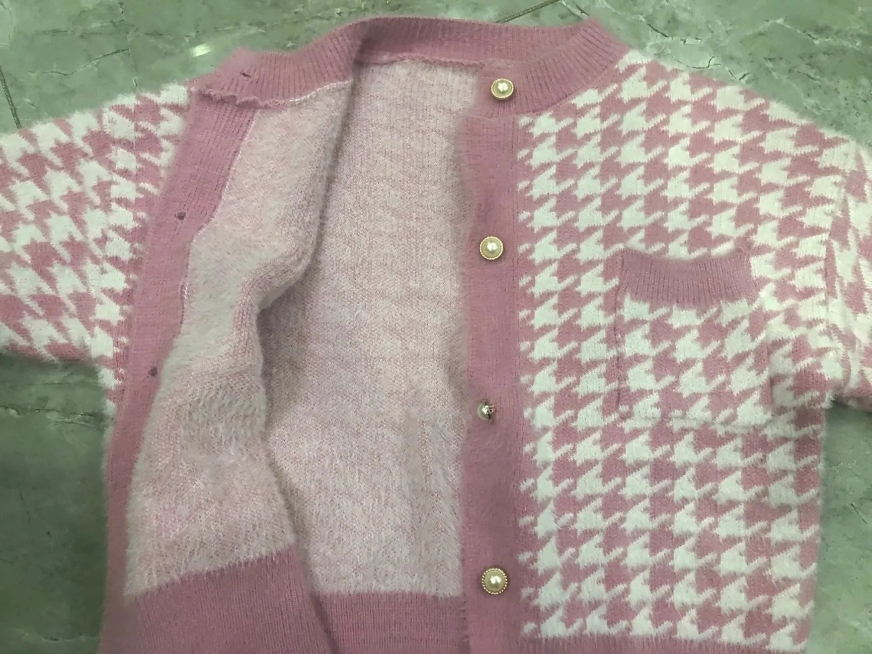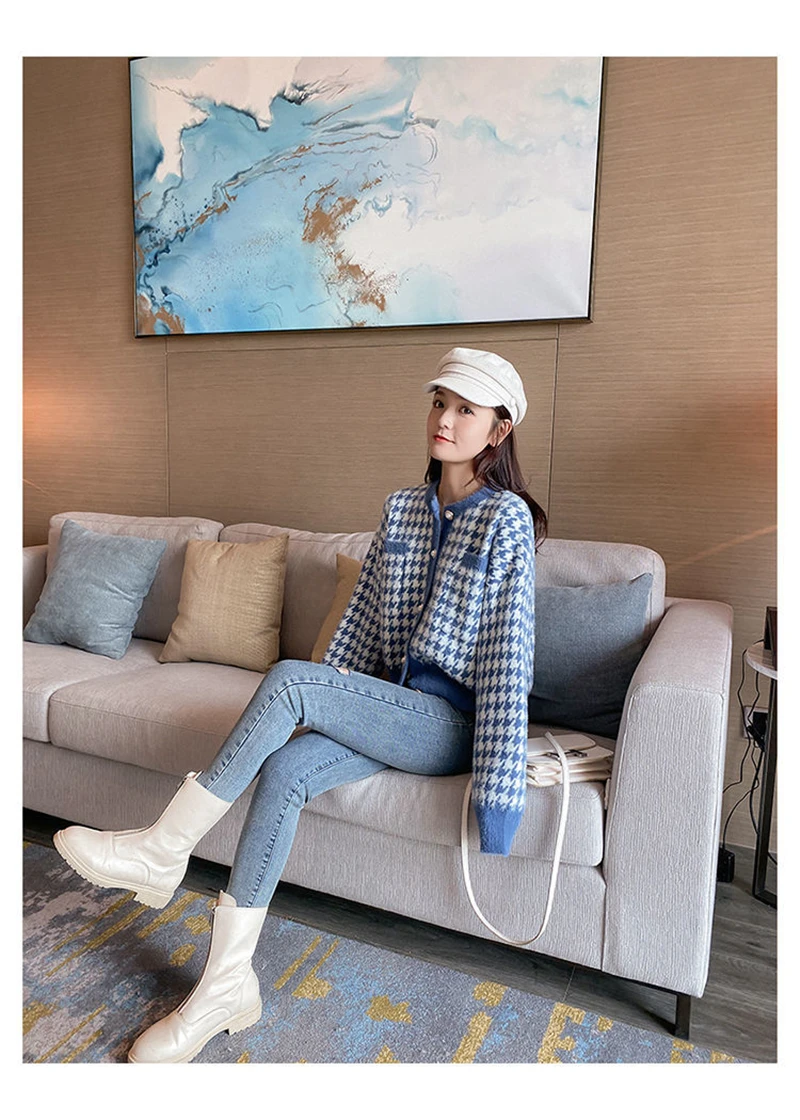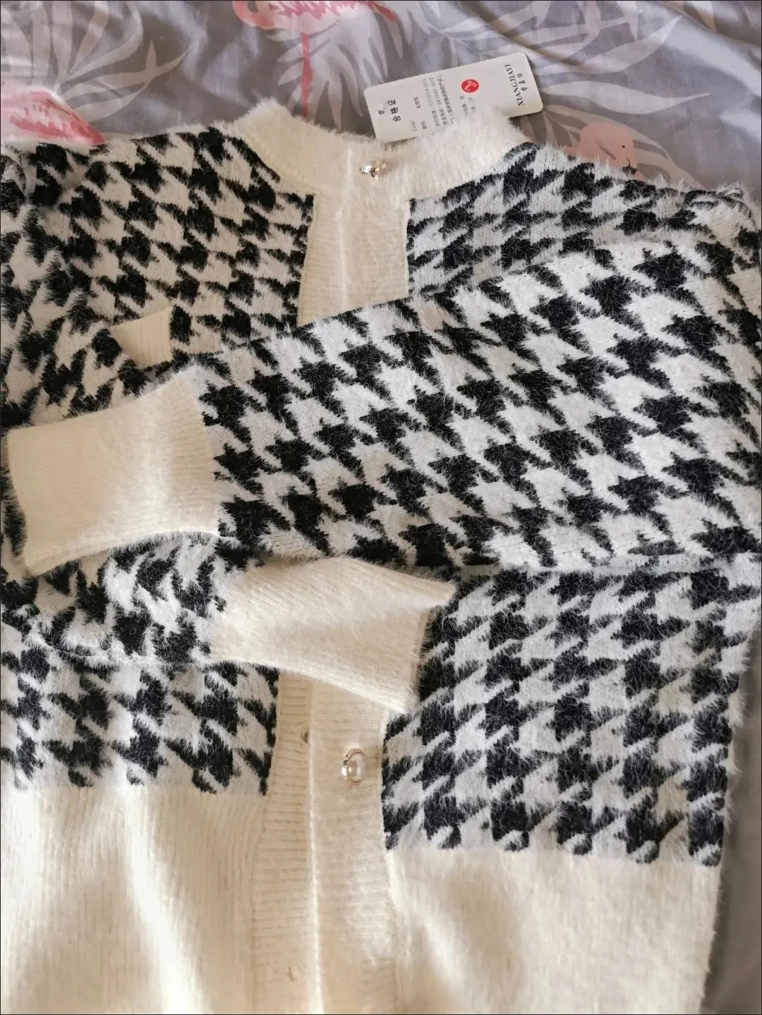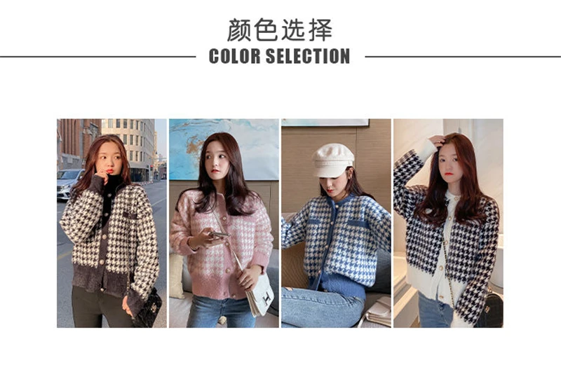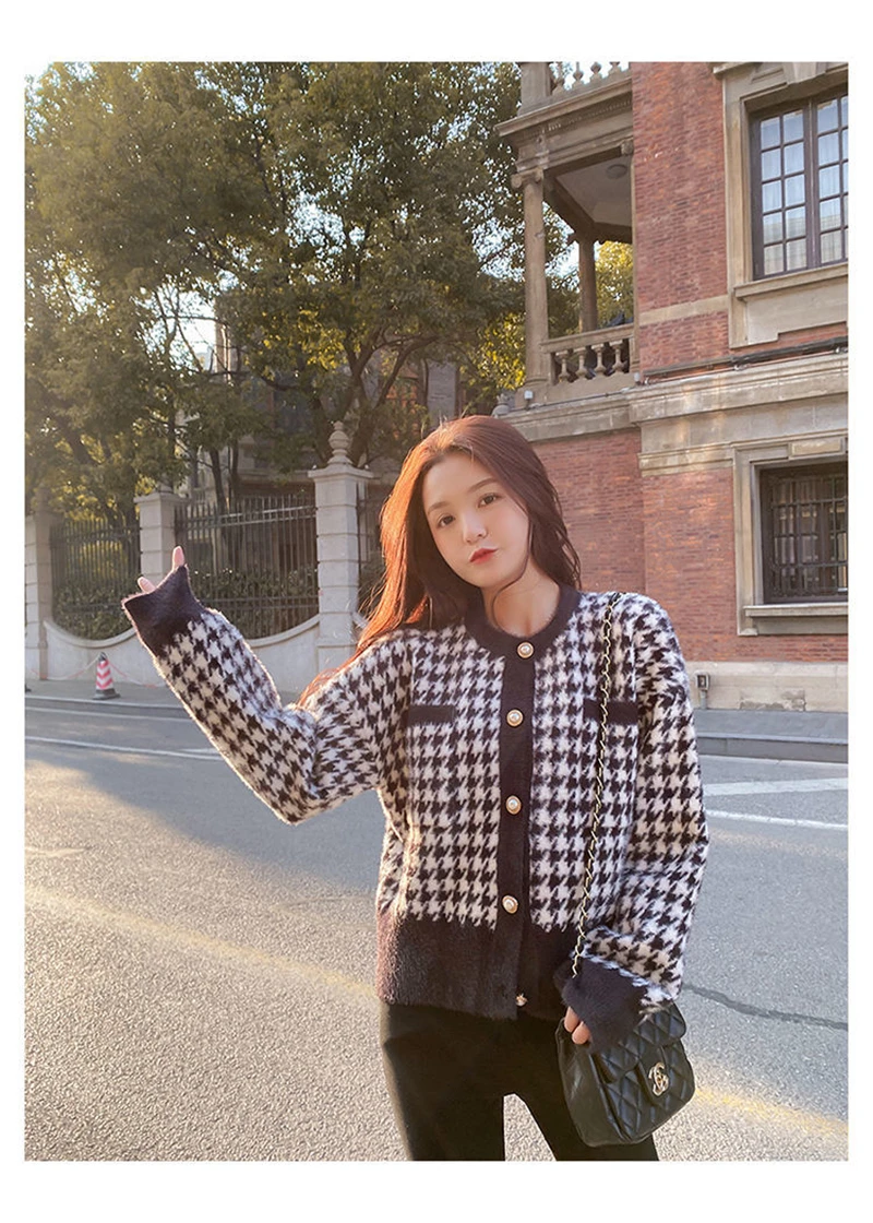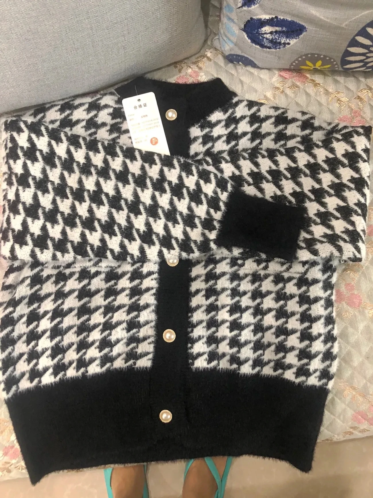 Короткий свитер в Корейском стиле гусиные лапки, кардиган, куртка, женская элегантная вязаная одежда из искусственной норки и флиса, топы, винтажные вязаные пальто с круглым вырезом