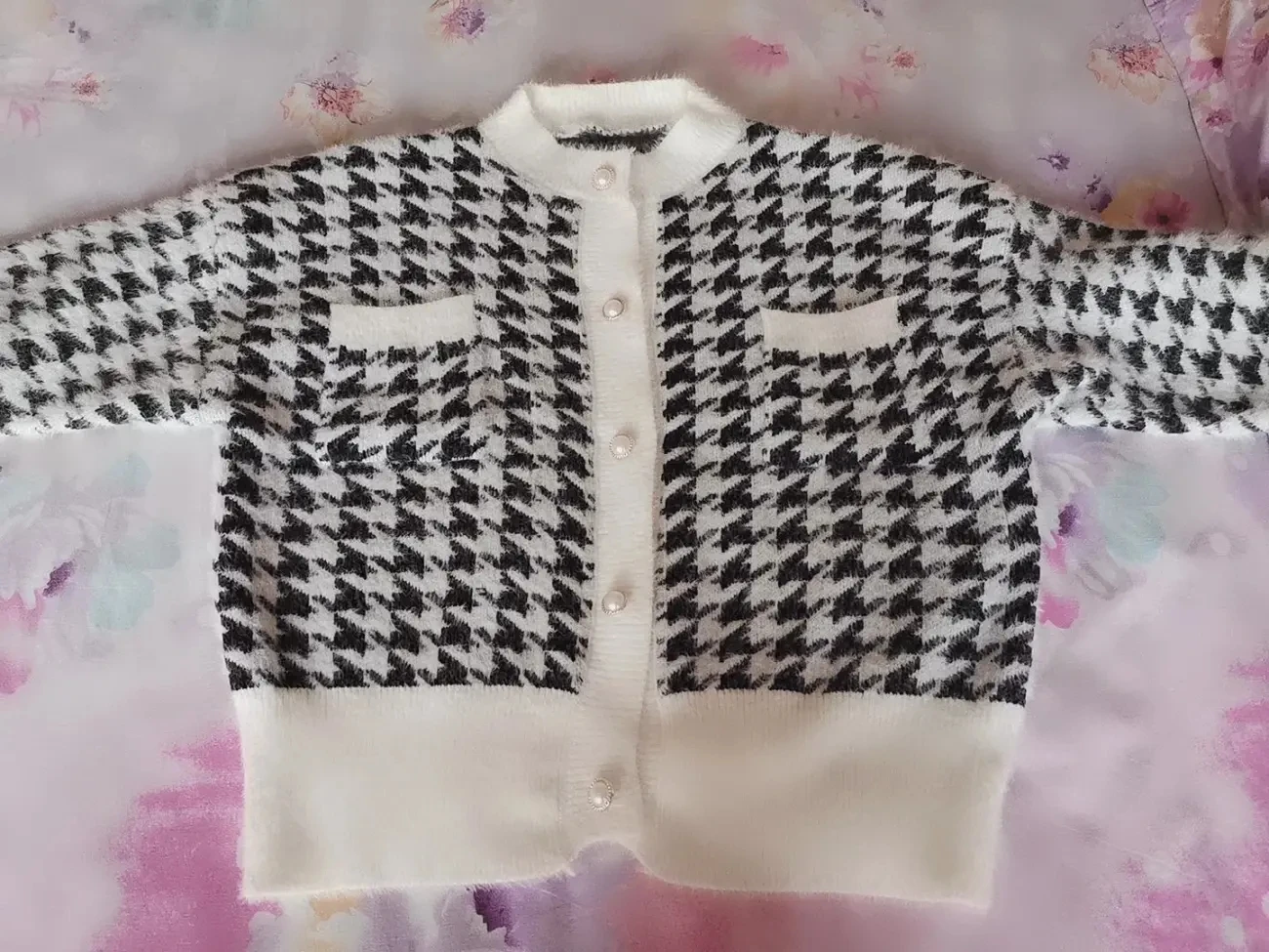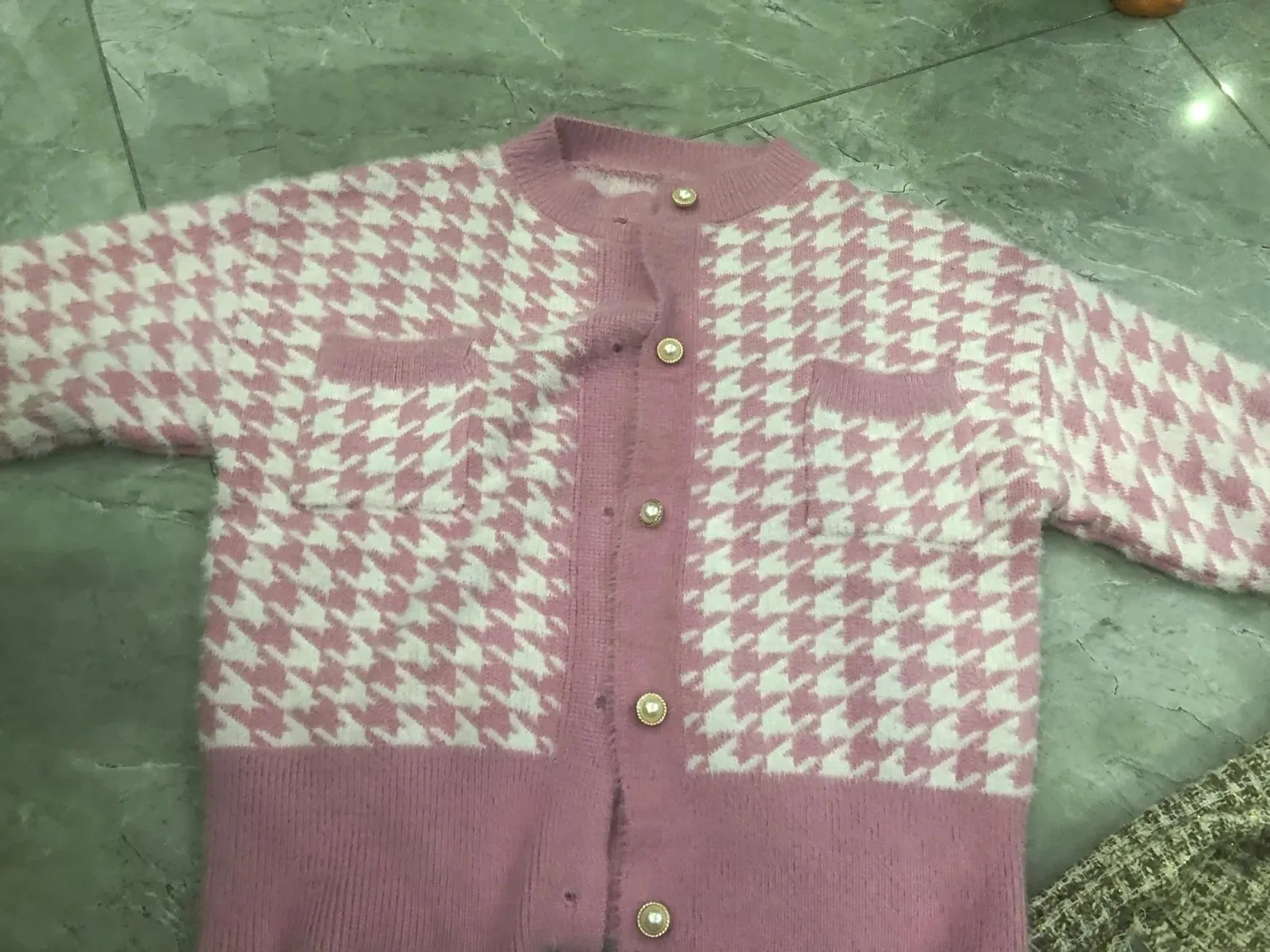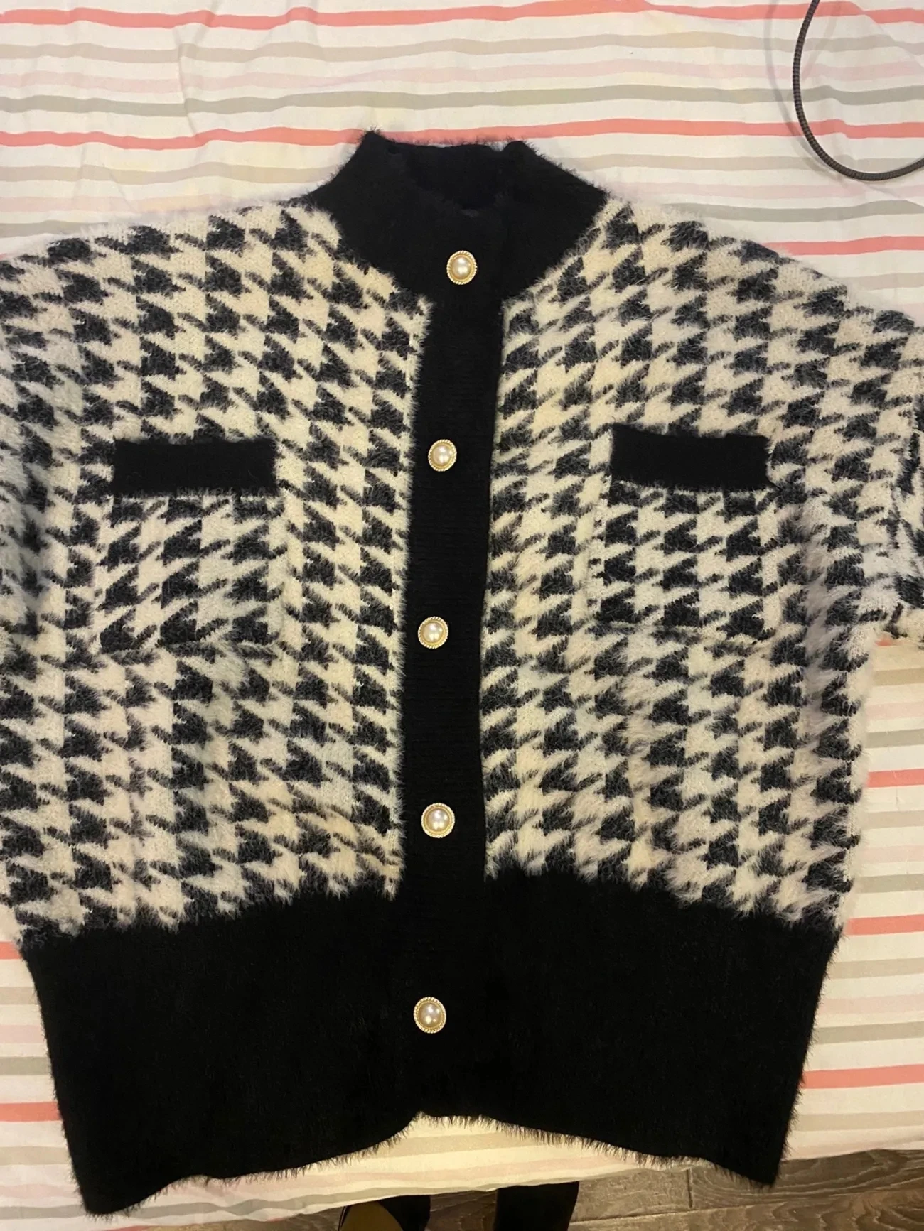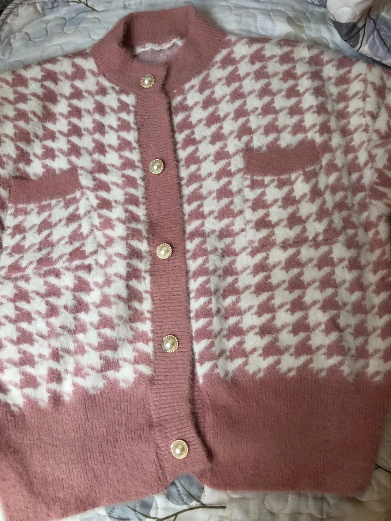 Короткий свитер в Корейском стиле гусиные лапки, кардиган, куртка, женская элегантная вязаная одежда из искусственной норки и флиса, топы, винтажные вязаные пальто с круглым вырезом