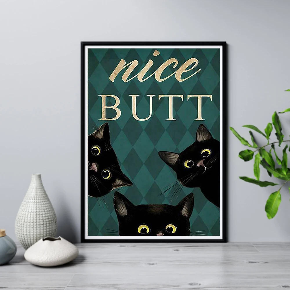 Умственный плакат с черной кошкой, красивая стыка, художественный принт, винтажная животная собака, забавная Картина на холсте для ванной комнаты, украшение для дома
