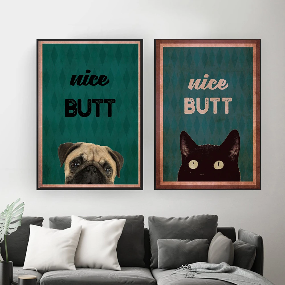 Ментальный Черный кот постер хороший Поппер художественный принт винтажный животное собака забавная ванная холст картина украшение для дома Декор