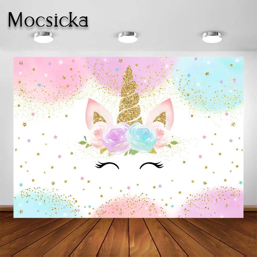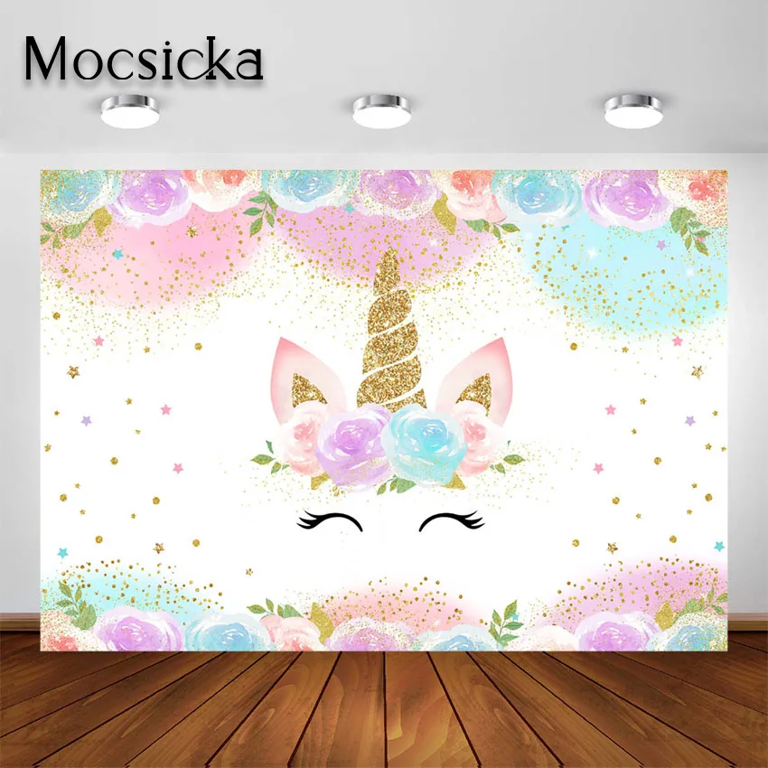 Mocsicka Радуга фон с единорогом для девочек Единорог Цветочные в блестящий горошек с рисунком День рождения украшения фон для фотосъемки