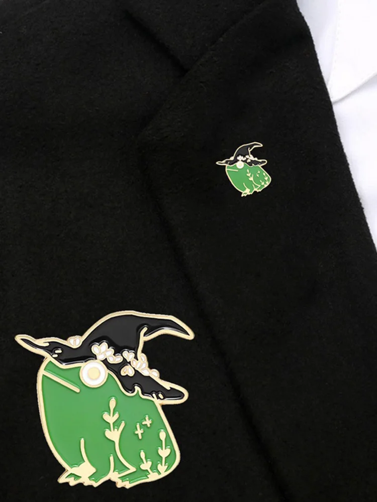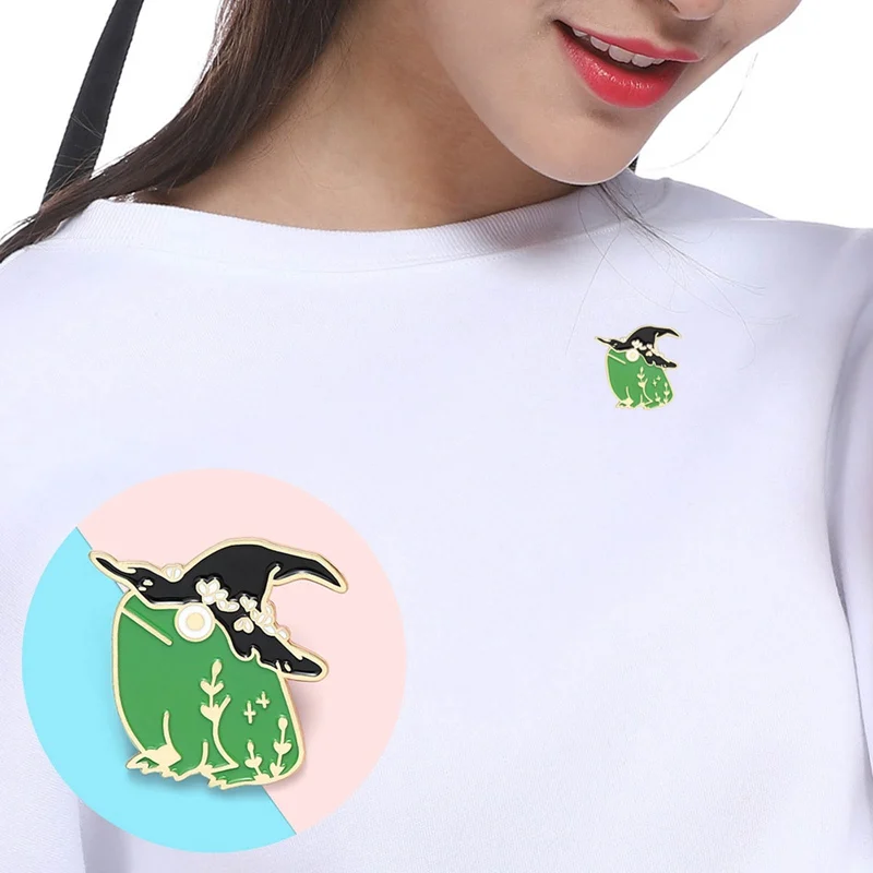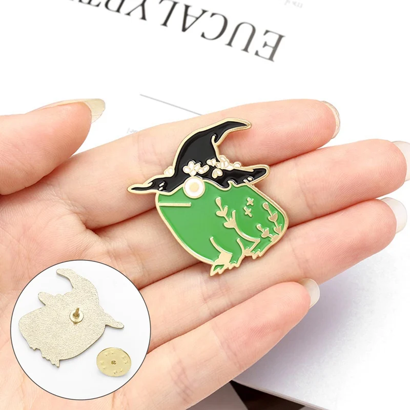 Эмалированные булавки лягушка с шляпой на заказ, шляпа ведьмы лягушки, мешочек для брошек одежды, значок на лацкан, мультяшное ювелирное украшение, подарок для детей и друзей