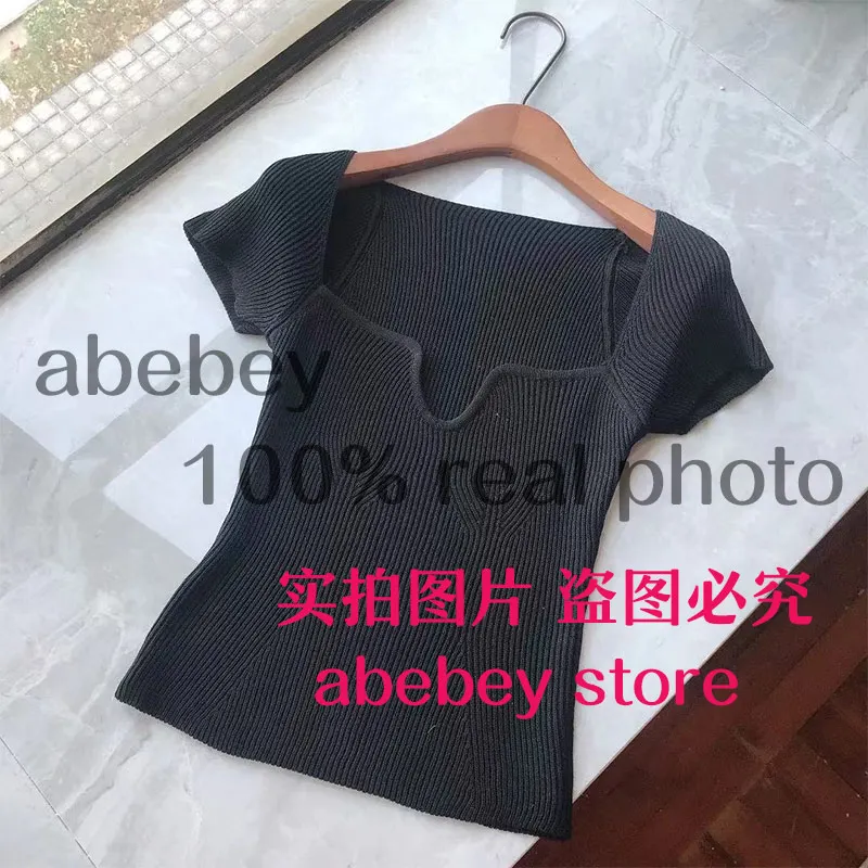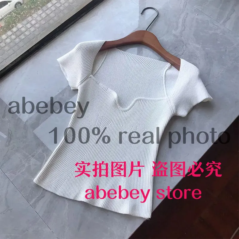 Женская трикотажная футболка-футляр, с V-образным вырезом и коротким рукавом, укороченные топы для девушек