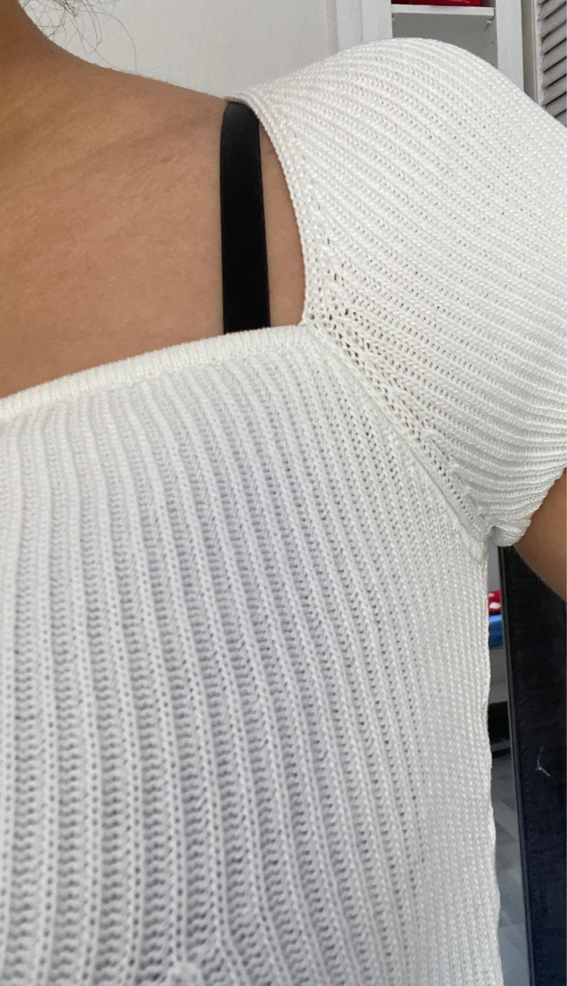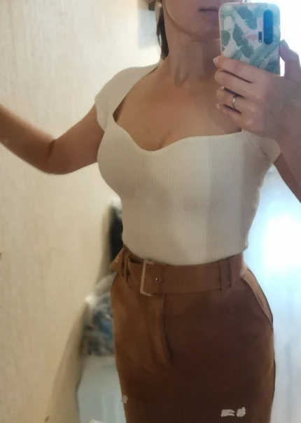 Шикарный топ, молочно-белый цвет. Без брака, очень аккуратный. Выглядит так же, как и топы в сетевых магазинах за 2000р в среднем. Если ОГ +- 90 - размер S идеален. Немного коротковат, только под заправку. Дошел за 2 недели.