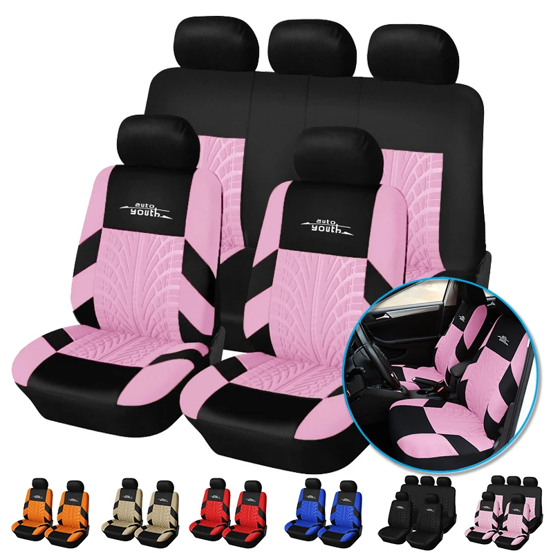 Полный комплект, розовые Чехлы для автомобильных сидений, защита для переднего и заднего сидений, совместимы с подушками безопасности, универсальные, подходит для грузовиков, внедорожников