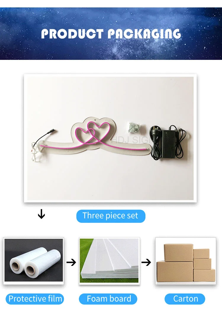 Часто задаваемые вопросы1. При необходимости мы можем предоставить вам все типы неоновых ламп.Просто предоставитьСодержание,Цвет,Размер,Или отправьте нам свойДизайнерские рисункиИПодробные требования2. Настенная установка, подвесная установка, простая и удобнаяПовесьте сверху знака или прикрутите к стене с помощью проволоки, мы можем предоставить его.3. Стандартная вилка в любой странеУ нас есть американские, британские, австралийские и европейские вилки, 110 В вилки, 220 В вилки.4.1 год гарантии на неоновые лампыВсе наши светодиодные неоновые вывески изготовлены из светодиодного неонового Флекса лучшего качества, поэтому мы можем гарантировать 6 месяцев наружной гарантии и 1 год внутренней гарантии. В течение гарантийного срока, если есть какие-либо проблемы с качеством, мы отремонтируем или заменим его бесплатно.5. Лучшая ценаМы осуществляем прямые продажи и проводим лучшие проверки качества, поэтому, когда мы предоставляем вам продукцию наилучшего качества, мы также можем предоставить вам самые разумные цены. В то же время агенты также могут сотрудничать с нами.6.Короткое производствоИБыстрая доставкаУ нас есть завод с более чем 100 работниками и мы установили долгосрочные отношения с транспортной компанией. Поэтому мы можем гарантировать сократить время производства и доставки для вас. Производство обычно занимает от 4 до 5 рабочих дней, экспресс-доставка занимает около 30-60 дней, а Коммерческая Экспресс-Доставка занимает 5-7 дней