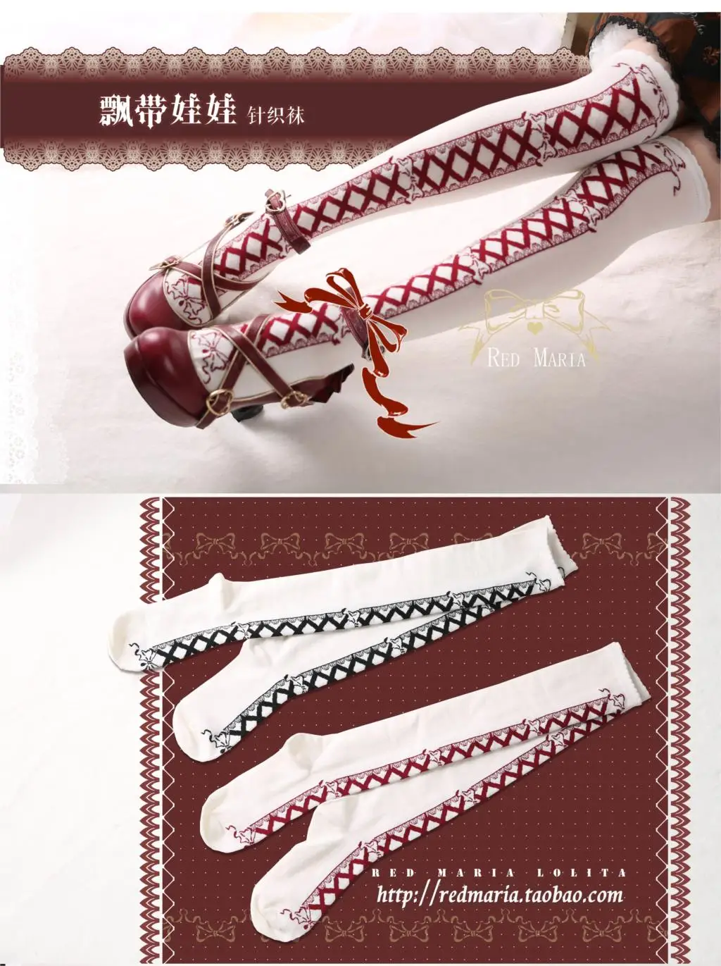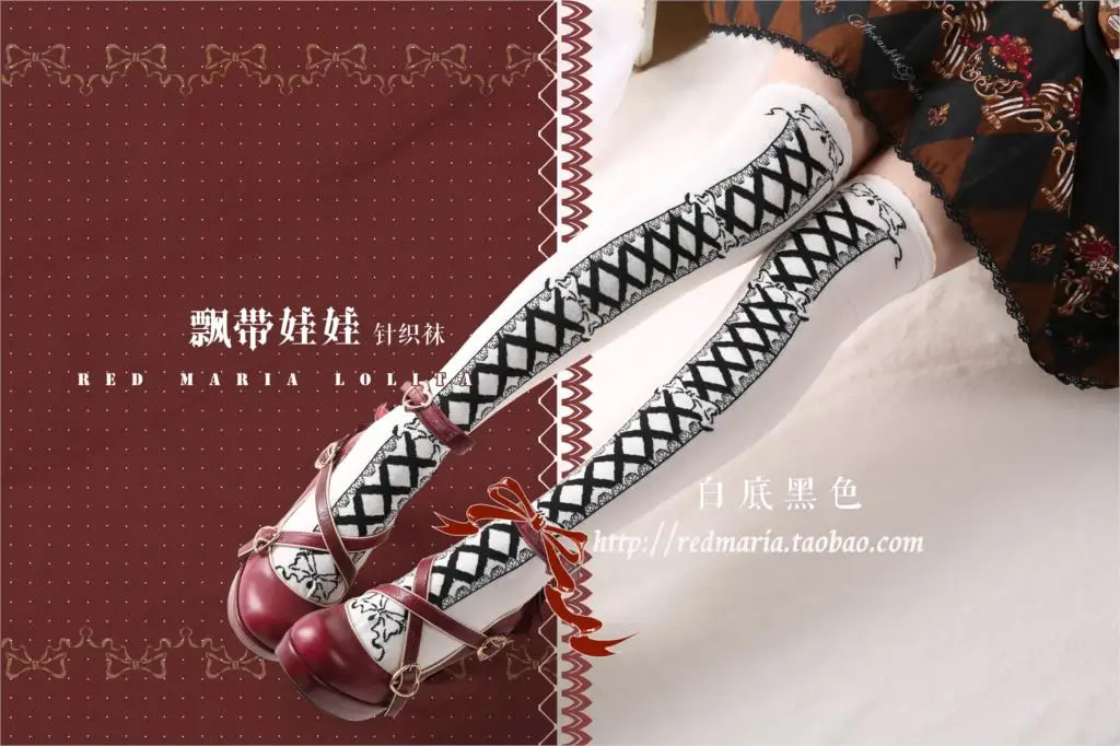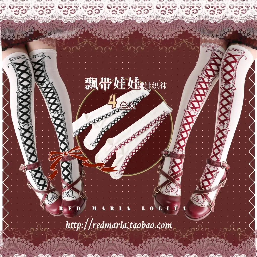 Чулки в стиле "Лолита", вязаные чулки с лентой для кукол, красные носки в стиле "Лолита", хлопковые носки до колена с бантом и низким ремешком
