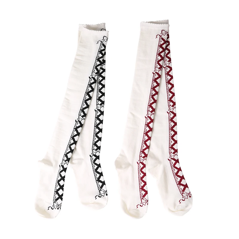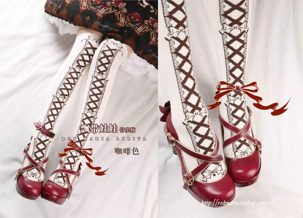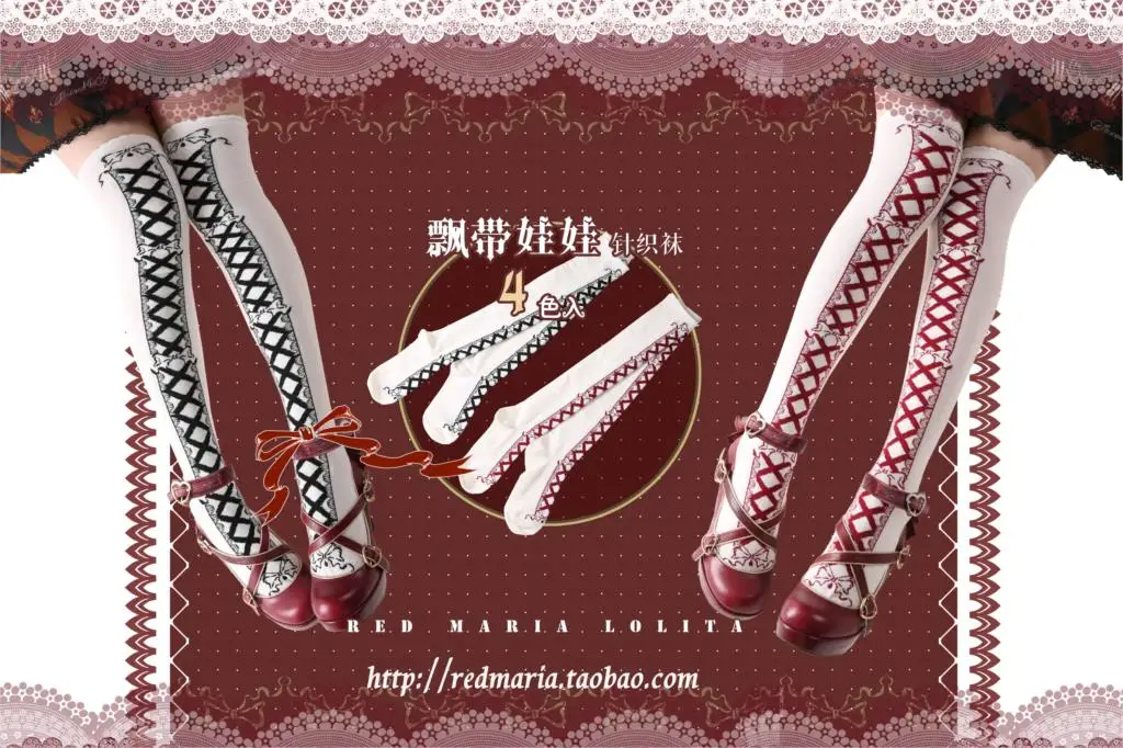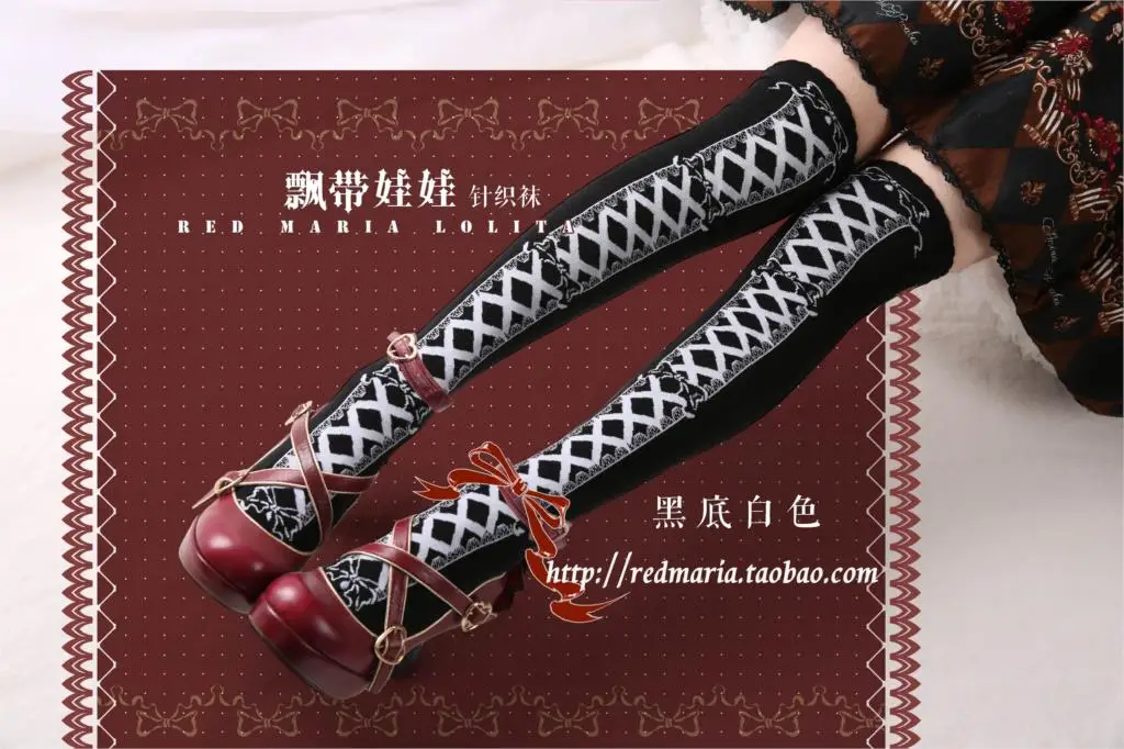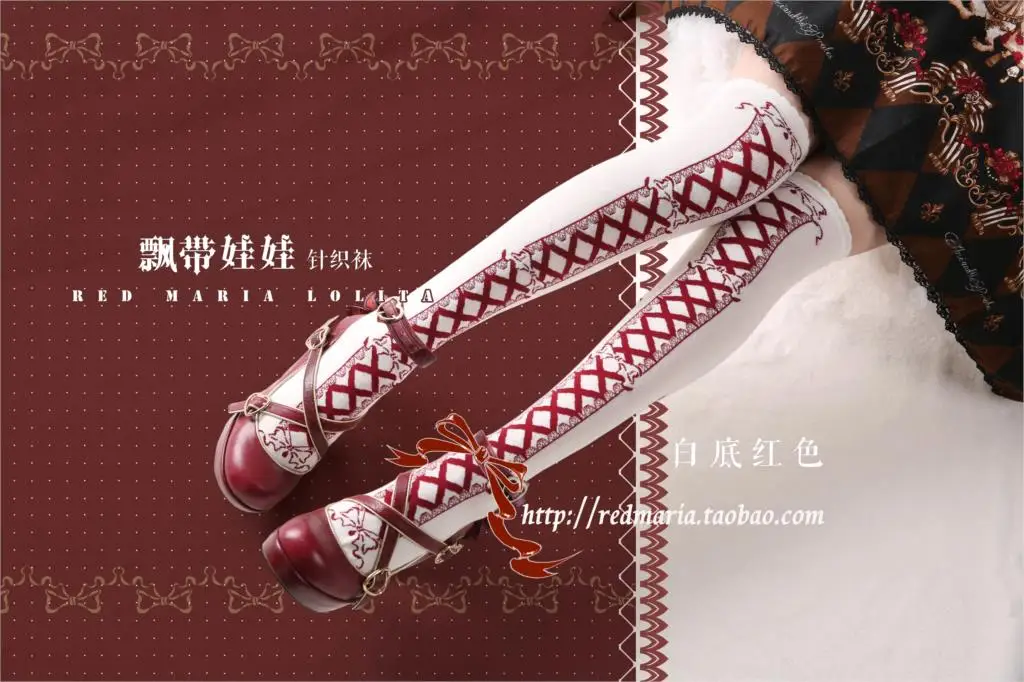 Чулки в стиле "Лолита", вязаные чулки с лентой для кукол, красные носки в стиле "Лолита", хлопковые носки до колена с бантом и низким ремешком