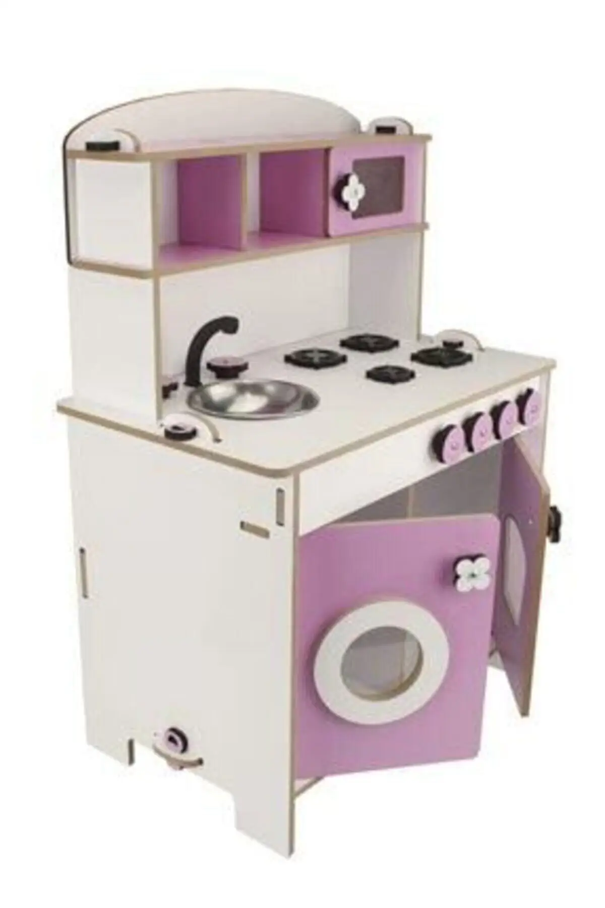 Розовый кухонный игровой набор, выполненный из деревянного материала,-это развивающая игрушка, которую дети полюбят играть и добавлять красок в свои комнаты. Его высота составляет 70 см и позволяет детям комфортно играть стоя.