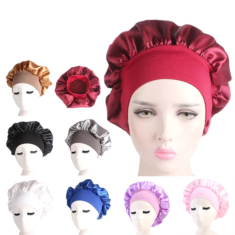Женская атласная шапка для ухода за волосами длиной 58 см, шапка для ночного сна, регулируемая шапка для душа с шелковой головкой, вязаная шапка сплошного цвета
