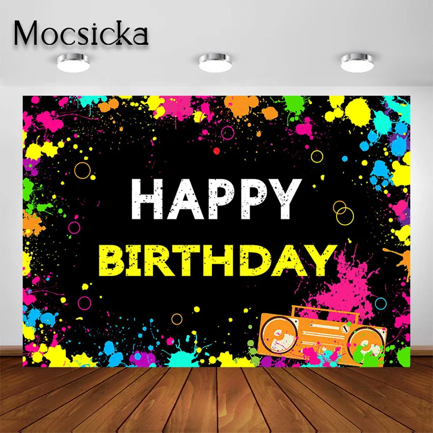 Неоновый фон для дня рождения, с изображением разбрызг граффити, светится в темноте, Mocsicka, фон для фотосессии
