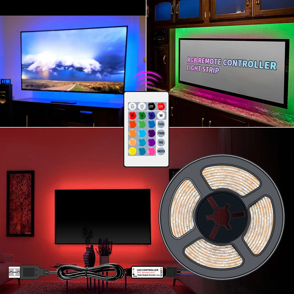 Водонепроницаемая RGB лента, гибкая USB-лента, 16 цветов, приглушаемые световые полоски с дистанционным управлением, 5 В, домашние украшения, 1-5 м