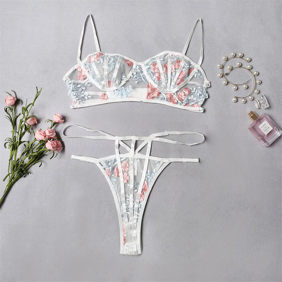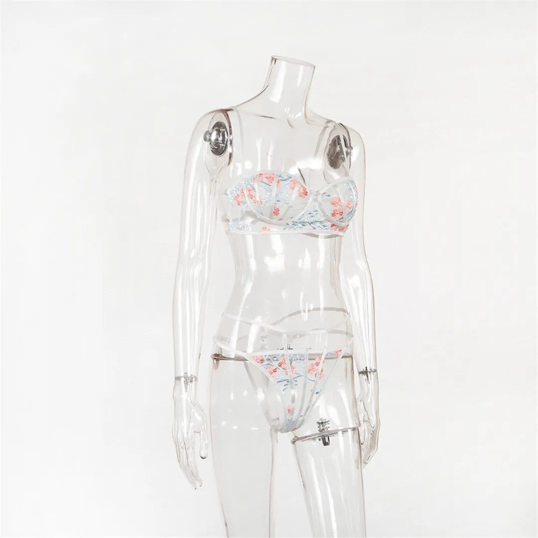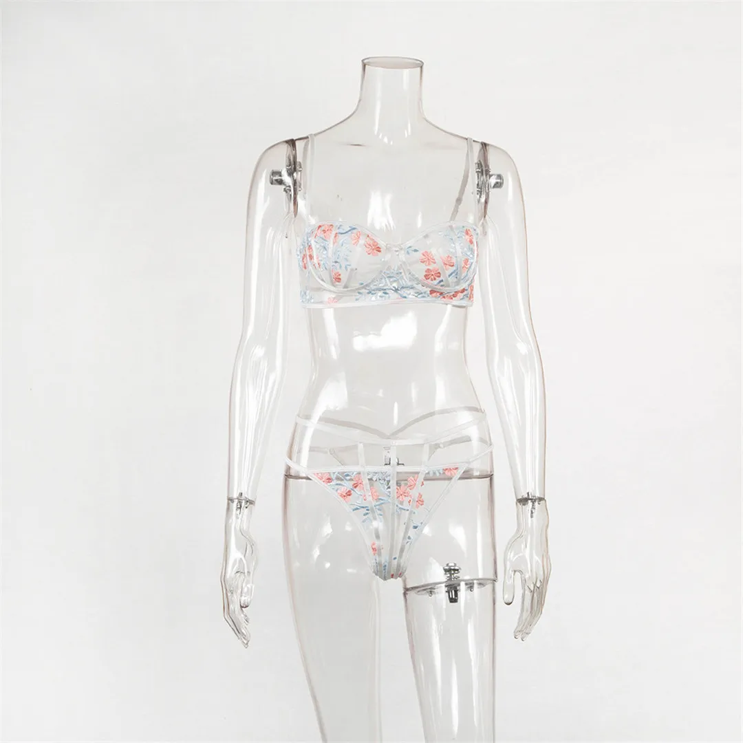 Нижнее белье женское, прозрачное, с цветочным принтом
