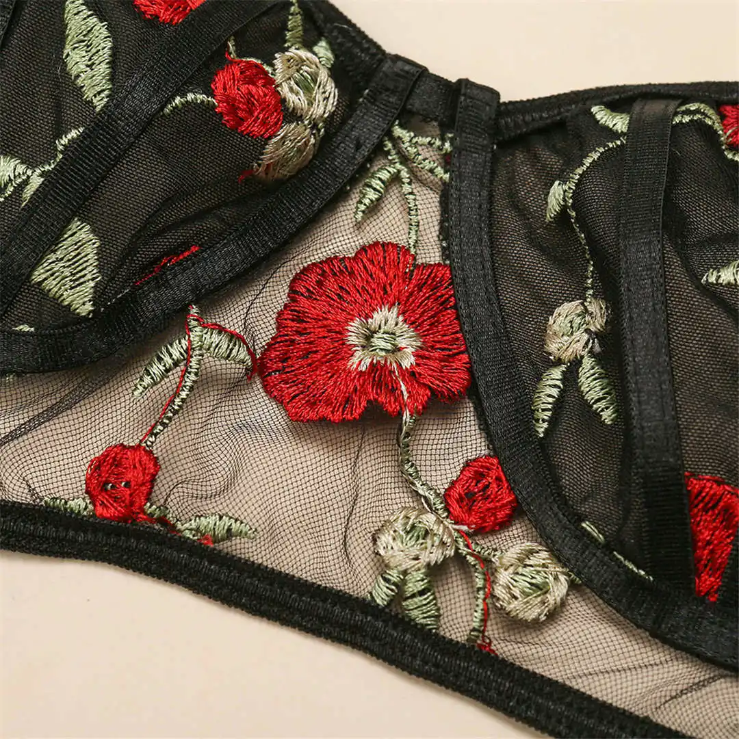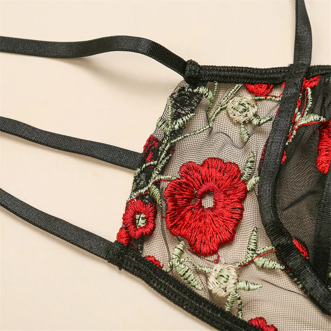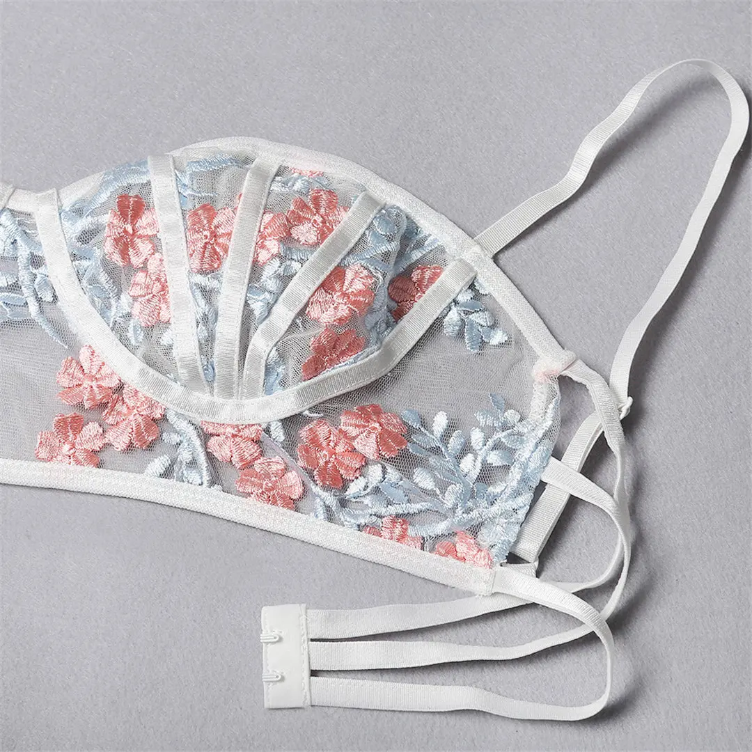 Комплект нижнего белья женский кружевной с цветочной вышивкой, на к...