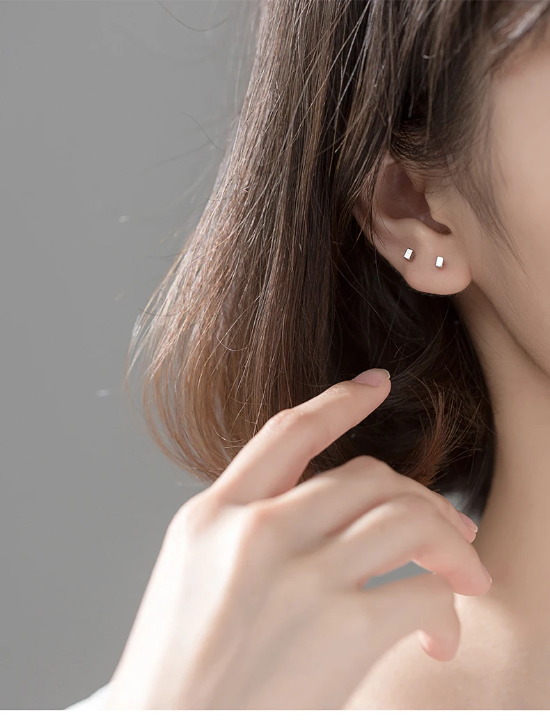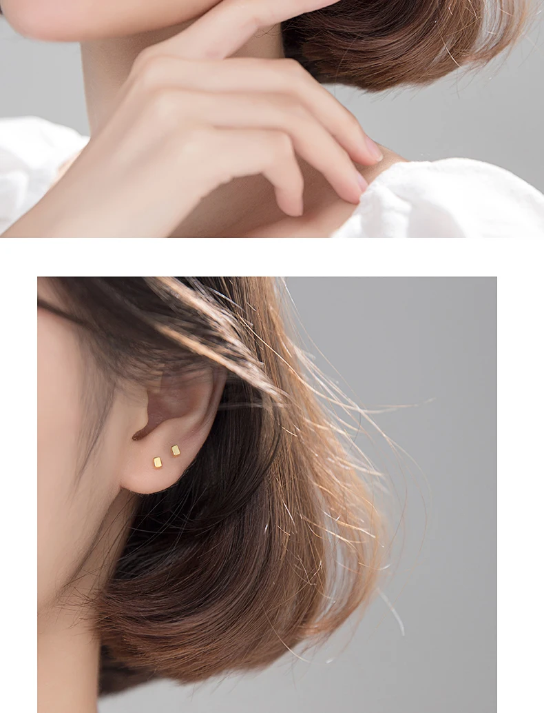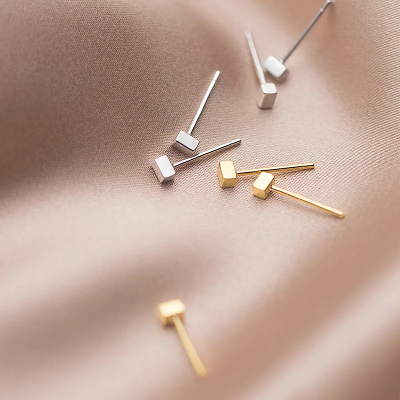 Женские Простые прямоугольные серьги из серебра S925 пробы в Корейском стиле, характерные маленькие прямоугольные золотые серьги, Женские Ювелирные изделия