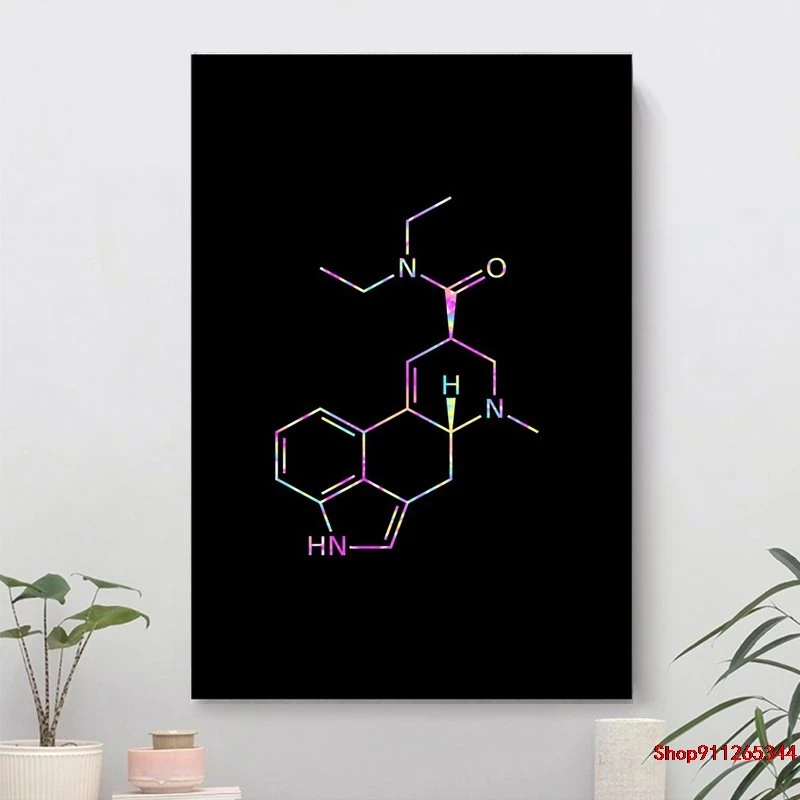 Настенные художественные плакаты с психоделическим принтом LSD молекул, холст, живопись, гостиная, спальня, дом, офис, гостиница, квартира