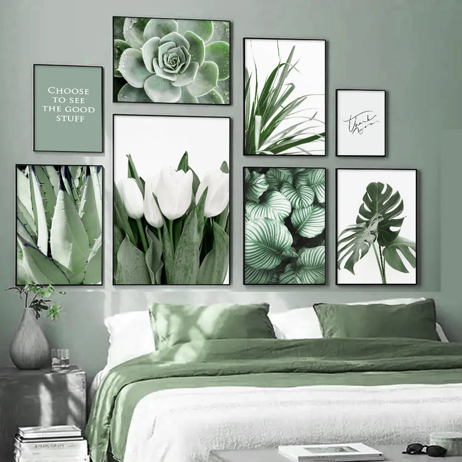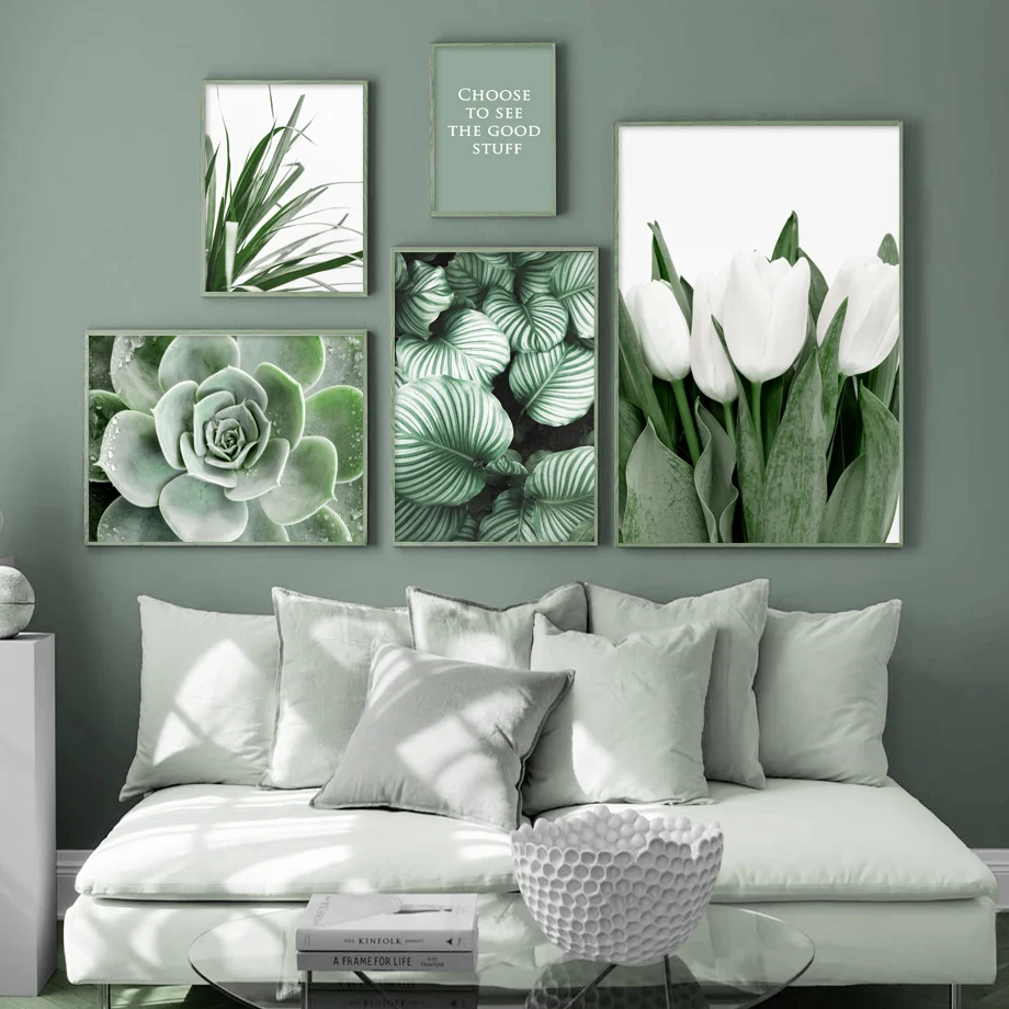 Зеленое растение, белый тюльпан, Орхидея, алоэ, монстера, искусство, холст, живопись, скандинавские постеры и принты, украшение для гостиной, настенная живопись