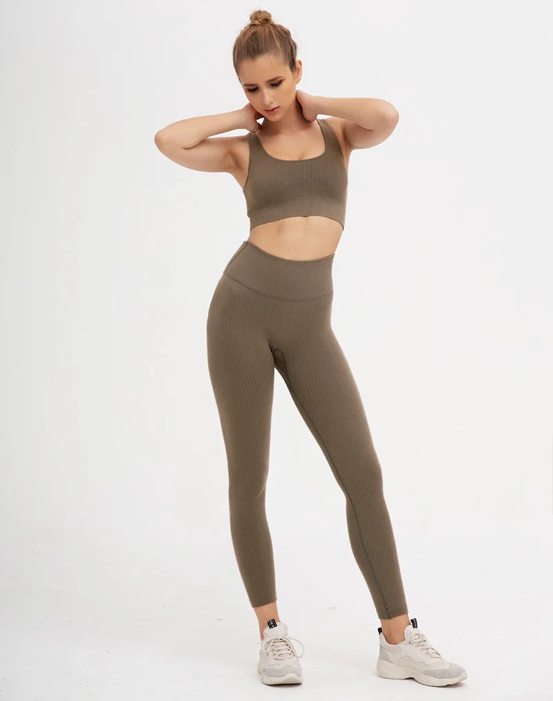Женская Спортивная одежда для бега комплект для йоги из 2 предметов бесшовный спортивный костюм для фитнеса высокоэластичные спортивные Леггинсы с эффектом пуш-ап бюстгальтер одежда для спортзала