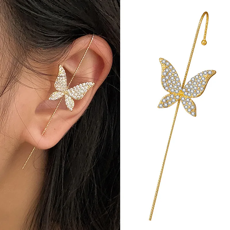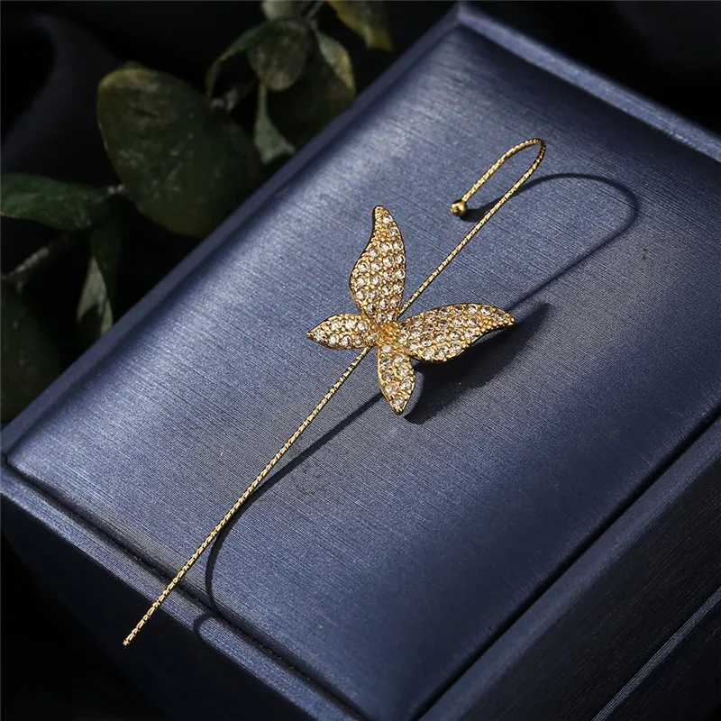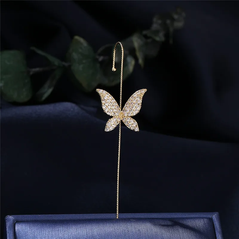 Женские серьги-гвоздики на гусеничном крючке, с кристаллами