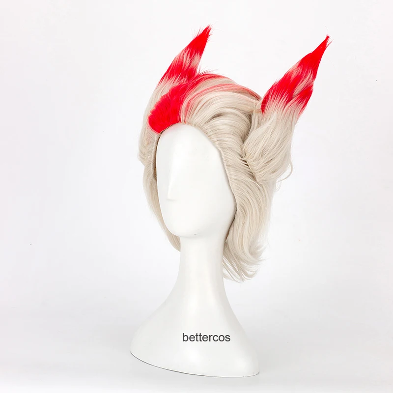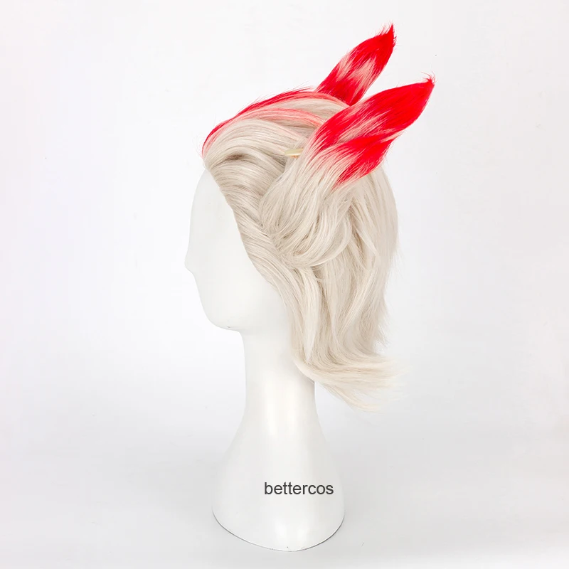 Парик для косплея LOL Rakan, 30 см, серебристый смешанный красный термостойкий синтетический парик, парик с шапочкой и двумя ушками, реквизит для женщин и мужчин на Хэллоуин