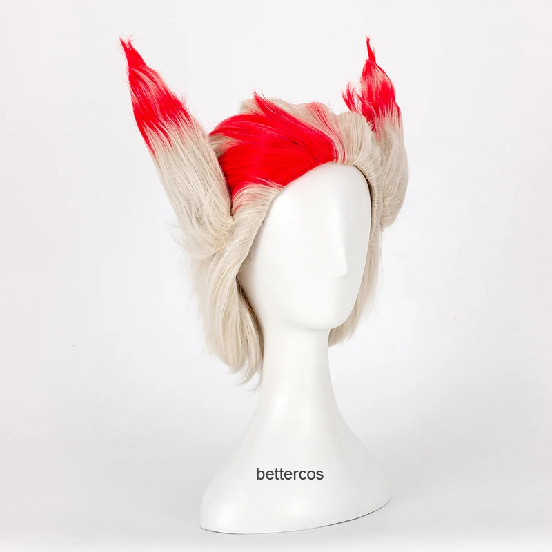 Парик для косплея LOL Rakan, 30 см, серебристый смешанный красный т...