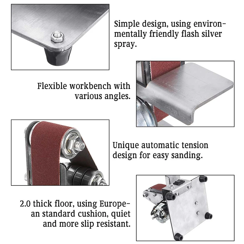 Встроенный Противоскользящий двойной подшипник, пылезащитныйТонкая работа, разумный дизайн и высокая точность. Простой дизайн, использование защиты окружающей среды Серебряный спрей.Гибкий верстак, все виды регулировки угла в сердце.Уникальная автоматическая конструкция затяжки позволяет легко полировать.2,0 утолщенный пол, с использованием европейских стандартных амортизаторов, бесшумная стабильность и более противоскользящая.Мощность: 350 ВтНомер двигателя: 895Входное напряжение: 110-240 ВЧисло оборотов холостого хода: 4000-9000 об/мин (7-регулировка скорости)Температура без нагрузки: 26 °C-45 °CШум: 75-85 дБРазмер ремня: 3x53 образования легкой пены. 3 см/1,2x20,9 дюймовРазмер машины: approx.11x10x19cm/4,3x3,9x7,5 дюймовРазмер песчаной подкладки: 3x53.3cmНомер модели: регулируемый поясЧастота: 50 ГцПрименение: домашний DIYПеременная скорость: ДаИсточник питания: электричествоТип: ленточный шлифовальный станокИспользование: команда по обновлениюВес: 1,6 кгЦвет: серебристыйМатериал: металлПосылка:1 * регулируемый пояс машина10 * шлифовальный пояс5 * гаечный ключТолько вышеуказанная посылка, другие товары не включены.Примечание: светильник и различные дисплеи могут привести к тому, что цвет товара на картинке немного отличается от реального. Допускается погрешность в измерениях +/- 1-3 см.