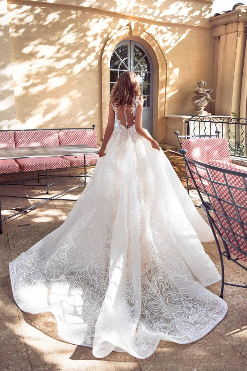 Женское свадебное платье со шлейфом MYYBLE, кружевное платье невест...