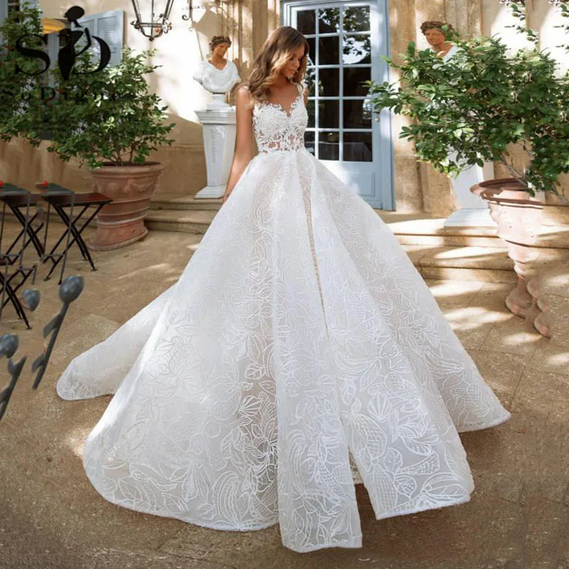 Атласное Бальное Платье soworthy, простое кружевное свадебное плать...