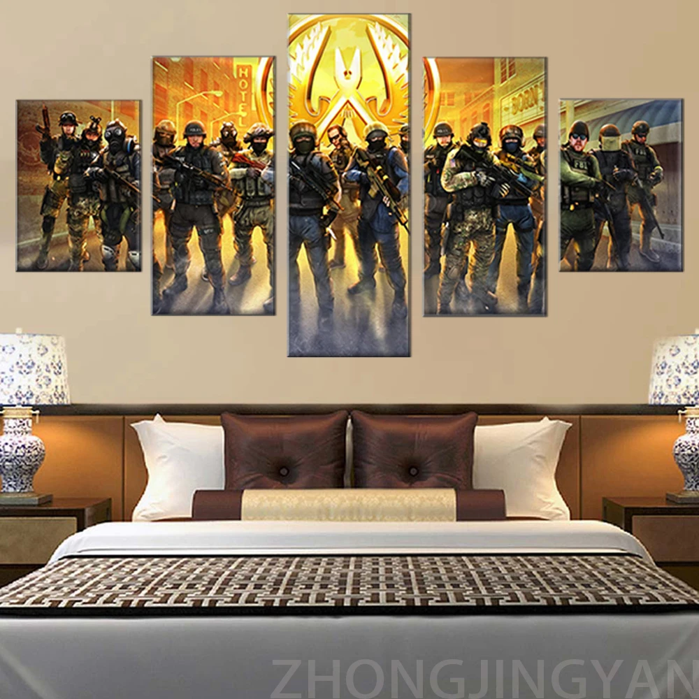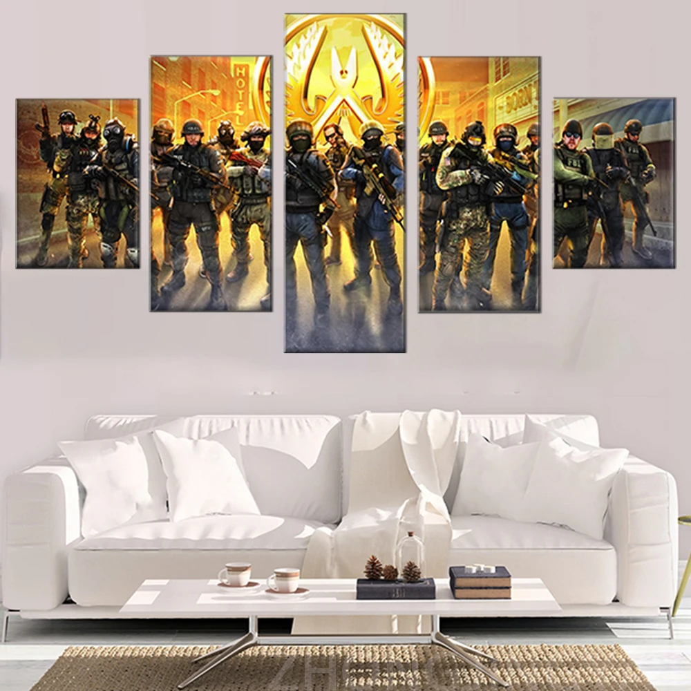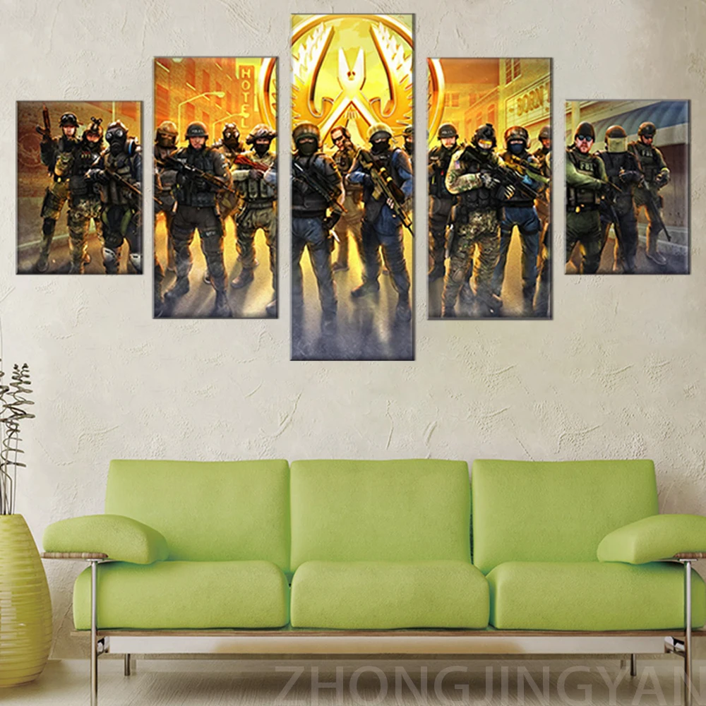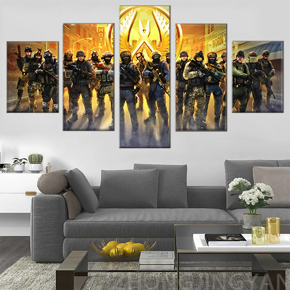 5 панелей HD CSGO видеоигра плакат печать на стене искусство Counter Strike Картина на холсте картина маслом украшение для комнаты мальчика