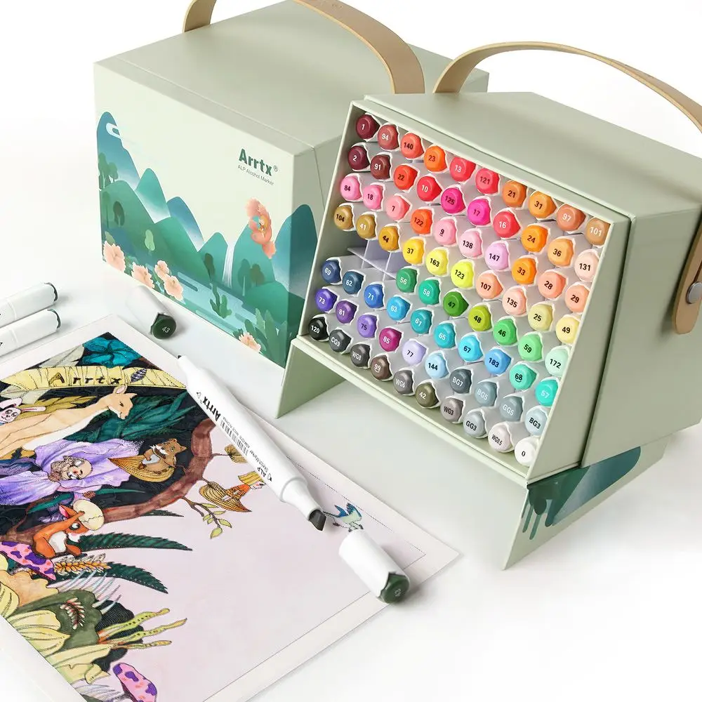 Спиртовые маркеры Arrtx ALP 80 цветов с двумя наконечниками, цветная ручка для портретной иллюстрации, подходит для начинающих и художников