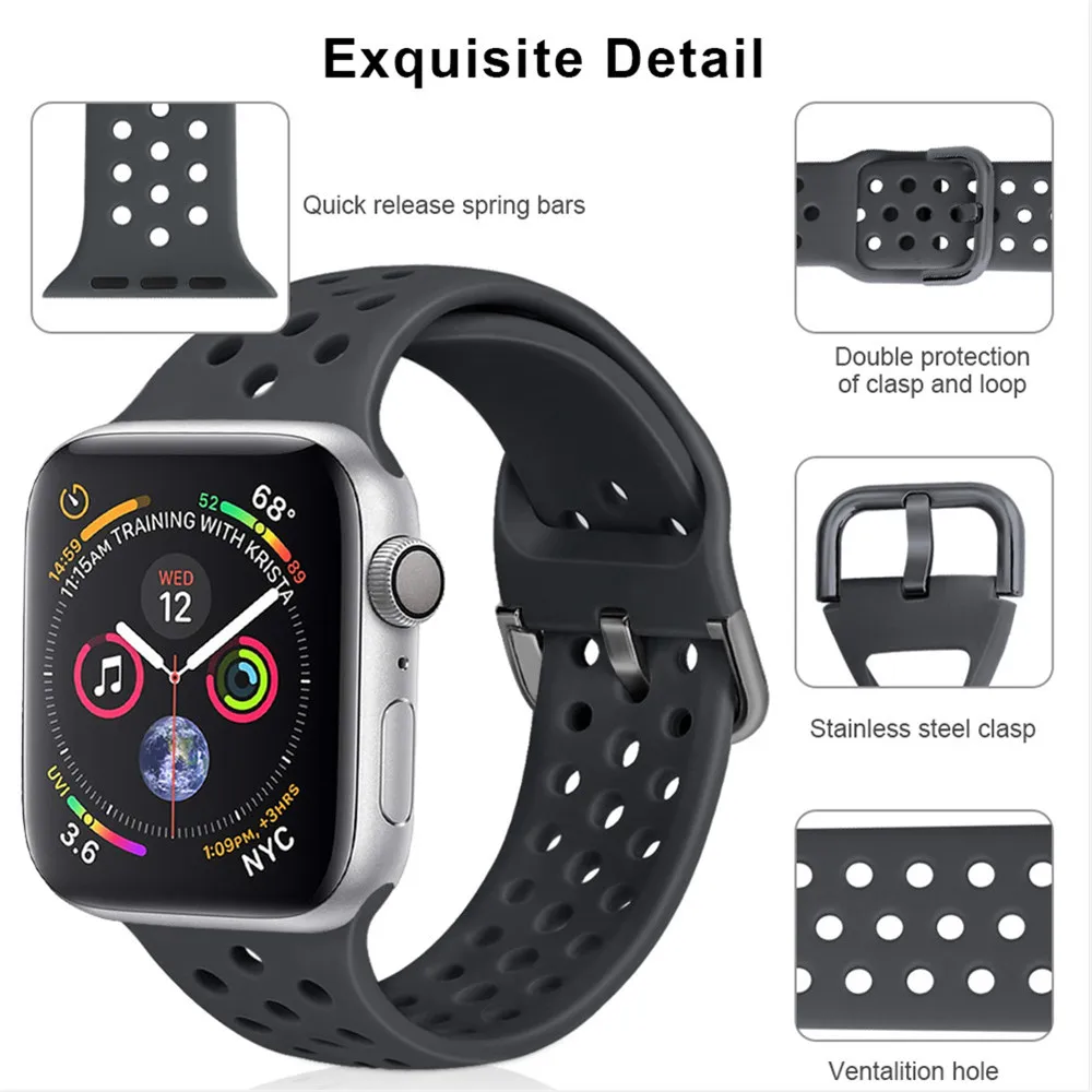 Ремешок для часов Apple Watch, силиконовый, дышащий, 44404238 мм