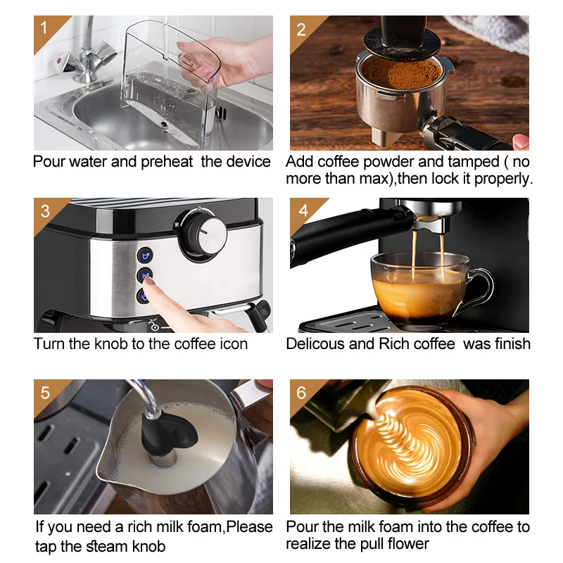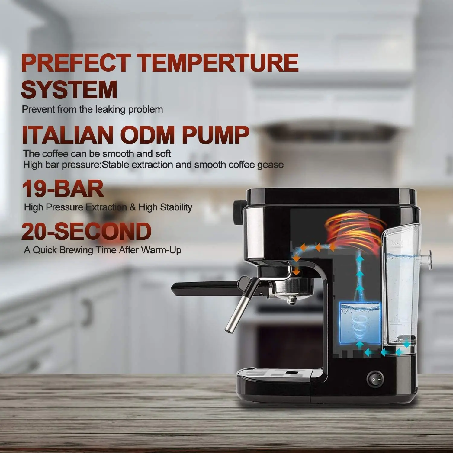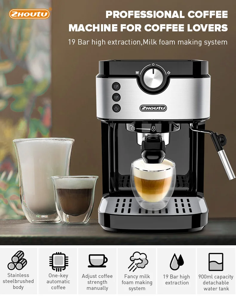 Кофеварка Zhoutu 19 бар, для эспрессо, капучино, 1372-1633 Вт