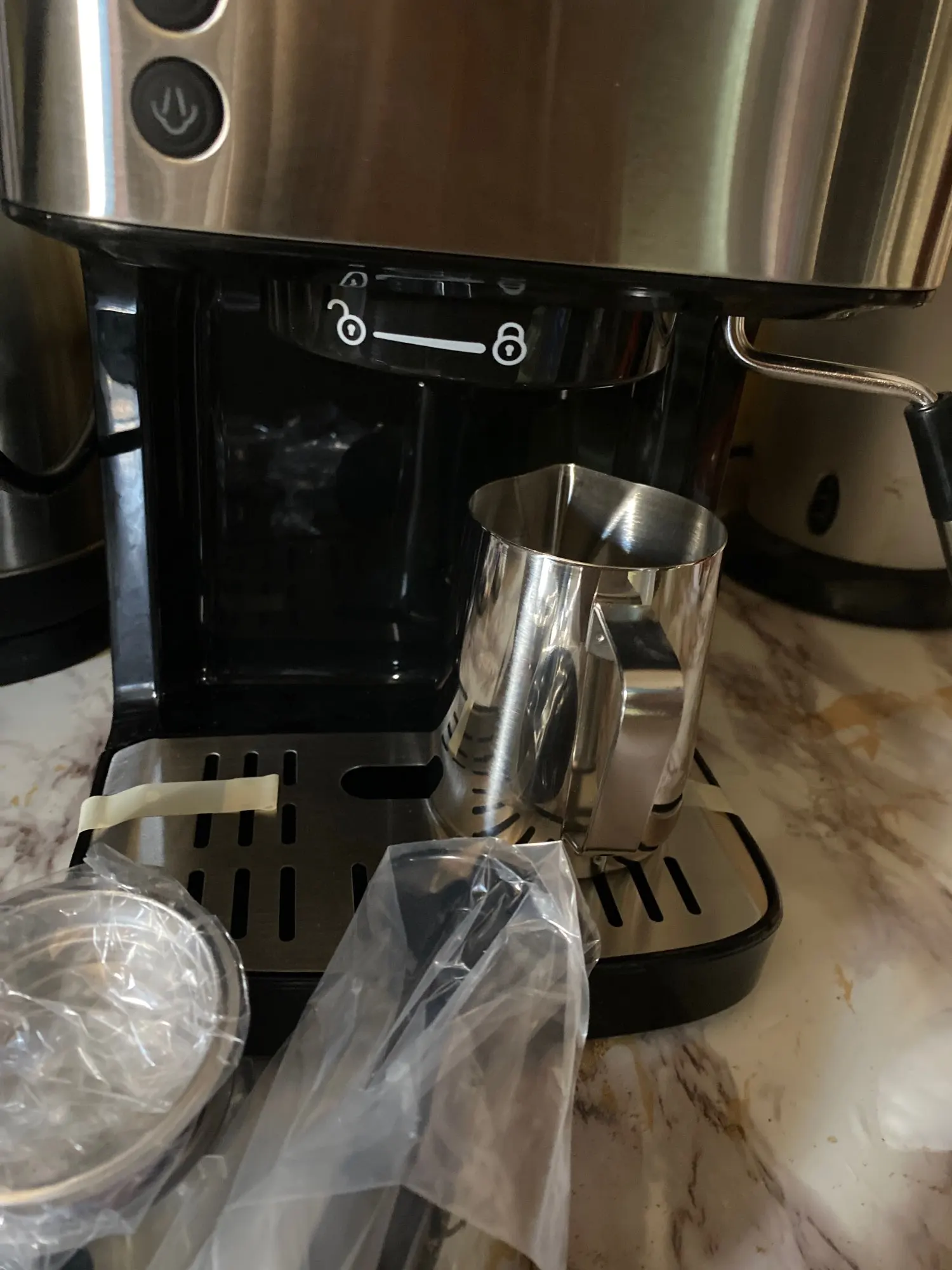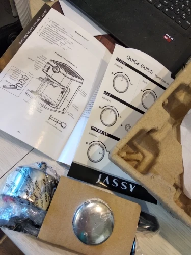Впечатления от кофеварки неоднозначные...Очень тугие рычаги,в первый раз просто невозможно повернуть круглый центральный рычаг-регулятор пара, также открутить рожок только у мужа получилось,нужны неимоверные усилия!!!Второй раз уже легче,видимо,надо разработать.Емкость для воды очень маленькая.Но все недостатки покрываются качеством сваренного кофе! Он просто замечательный!У меня уже было 2 кофеварки 15 бар,но разница существенная! Кофе очень насыщенный получается!НИКАКОГО ЗАПАХА ПЛАСТИКА и помине нет!!!Кремообразная плотная пенка дополняет картину!Просто оооооочень вкусно!!!Капучинатор ещё не испытывала,просто люблю черный кофе,но, думаю, капучино будет тоже на высоте,в подарок ёмкость для молока и 2 пакетика лимонного очистителя.Доставка 10 дней в пункт выдачи DPD,успели даже к Новому году! Спасибо большое!