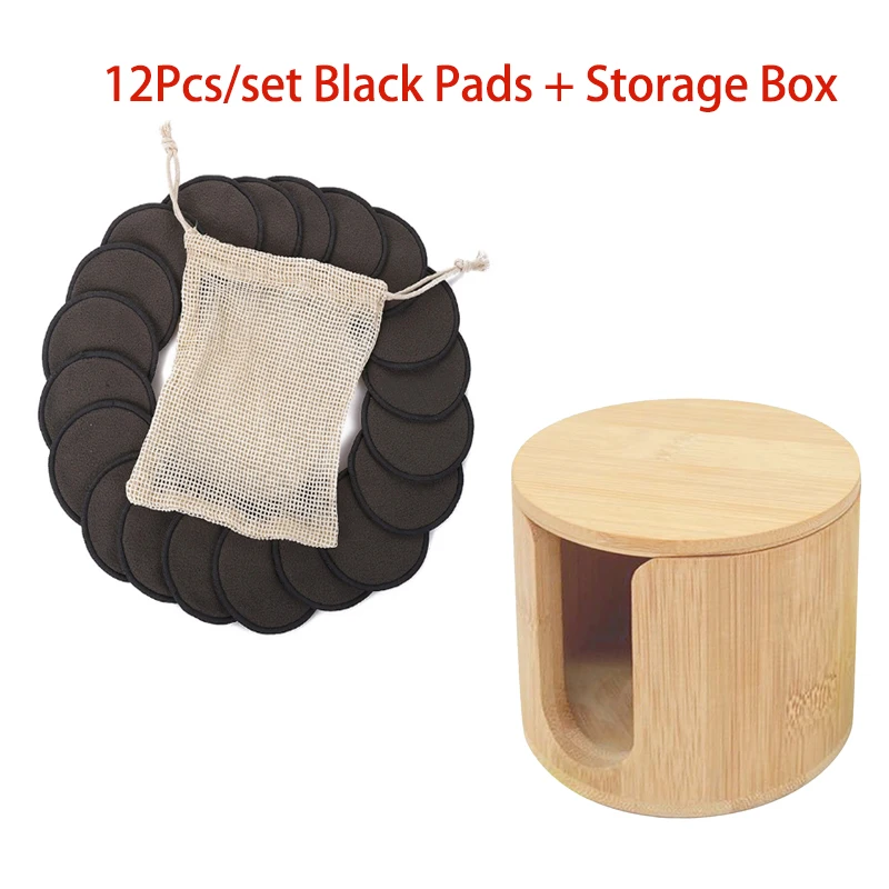 Многоразовые бамбуковые ватные диски 12 шт., моющиеся подушечки для снятия макияжа, мягкий очиститель кожи лица, подушечки для чистки лица с футляром для хранения