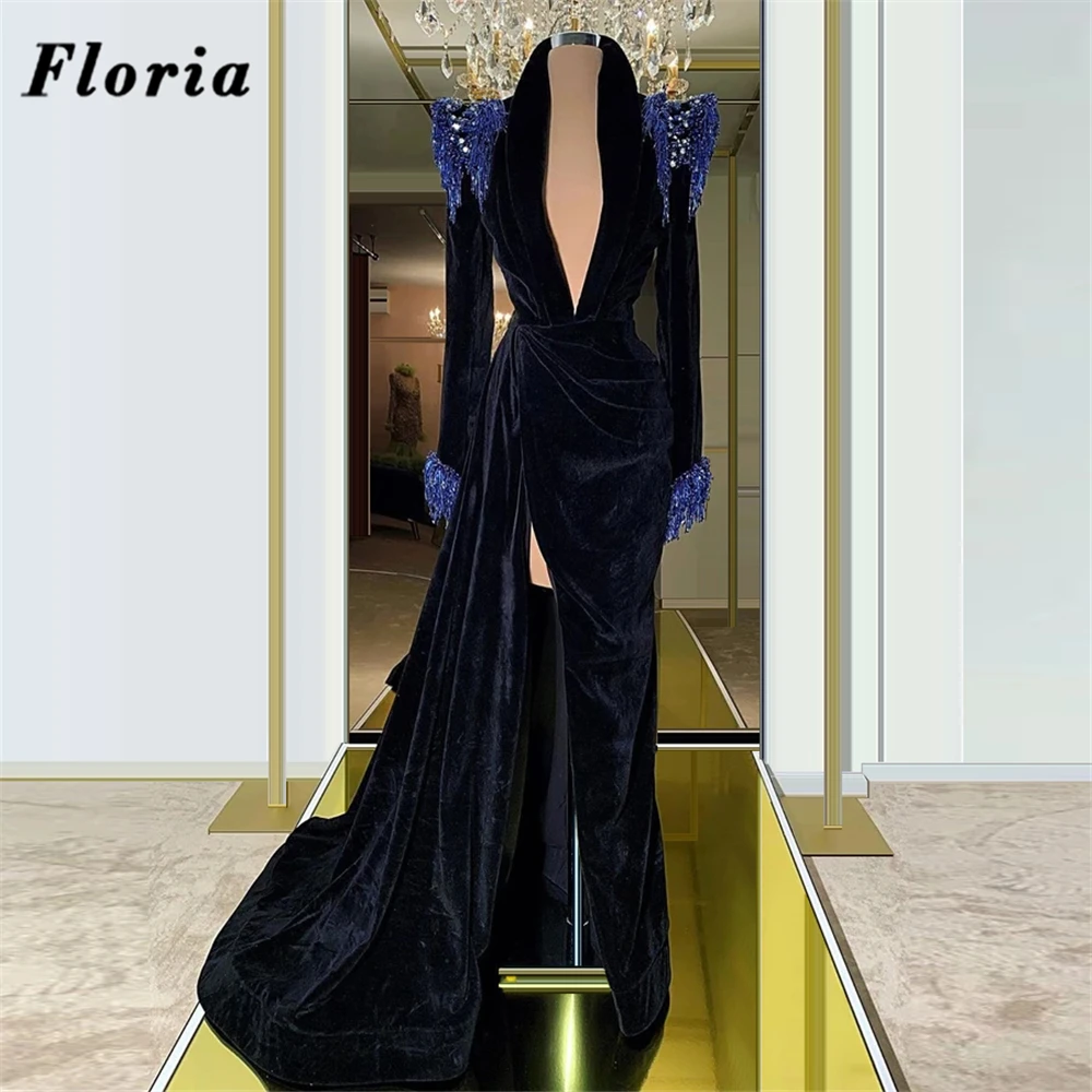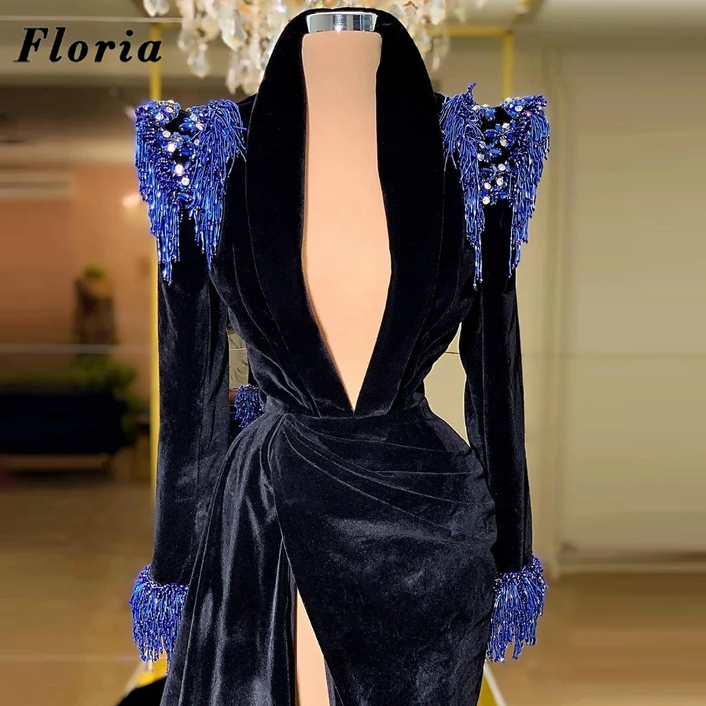 Новое поступление, платье для выпускного вечера с глубоким V-образным вырезом, 2021, платья с бахромой и блестками, черные бархатные вечерние платья, официальное вечернее платье для африканских девушек с бисером