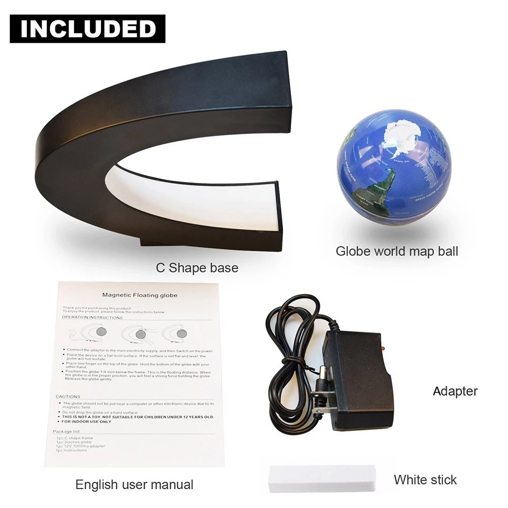 Плавучий глобус, меняющийся в разных цветах, для ночного обучения и ночной Светильник в темной комнате.3 "world Globe Anti Gravity C Форма Настольная декоративная красочная лампа с подставкой, магнитная левитация, плавающая карта мира, обратите внимание,Образовательные Подарки для подростков/взрослых, украшение для дома/офиса, подарок на день рождения, который позволит взрослым, подросткам и взрослым исследовать мир больше удовольствия; Идеально подходит как Рождество, день рождения, или в любое время для всех возрастов.Бесшумный: нет никакого шума от нашего антигравитационного магнитного глобуса (даже очень тихий шум), кроме других глобусов, при установке шара на основание низкий уровень шипения.Стабильность: Магнитный Плавающий глобус плавает стабильность, плавающий в воздухе. Обратите внимание: он не вращается автоматически.Он также с отрицательным ионным генератором, может очистить воздух и облегчить давление от работы и жизни.Изменение нескольких цветовСветящийся Магнитный глобус, антигравитационный плавающий левитирующий землю, вращается на 360 градусов при прикосновении, обратите внимание: он не вращается автоматически.Как использовать1. Пожалуйста, разместите левитационное устройство на абсолютно горизонтальной поверхности. Если поверхность не плоская и ровная, глобус не может левитироваться нормально.2. Включите питание.3. Удерживайте Лобок рукой и положите белую палку на основание в качестве подножки и перемещайте Южный полюс земного шара вертикально вниз по центру основания.4. Медленно подойдите к центру основания, и, пожалуйста, Двигайте его влево и вправо, или спереди и назад, чтобы попытаться получить точку левитации.5. Когда Глобус находится в правильном положении, вы почувствуете сильную силу, удерживающую Глобус. Осторожно Отодвиньте руки, они будут плавать. И Отодвиньте белую палку.