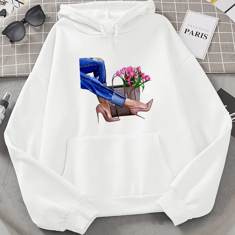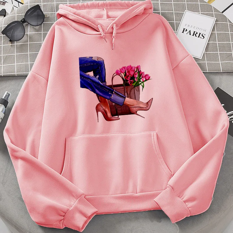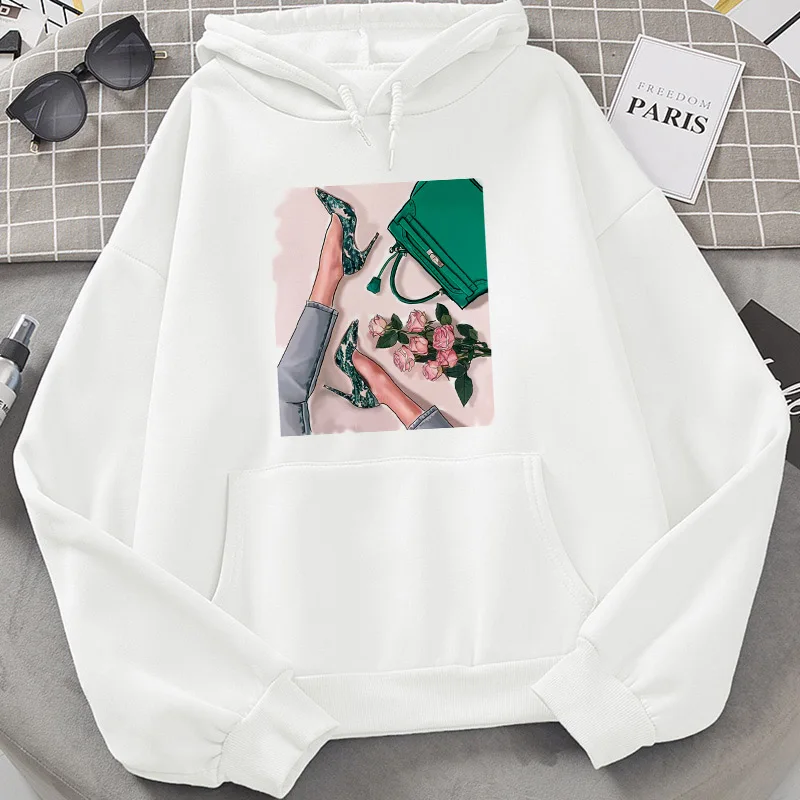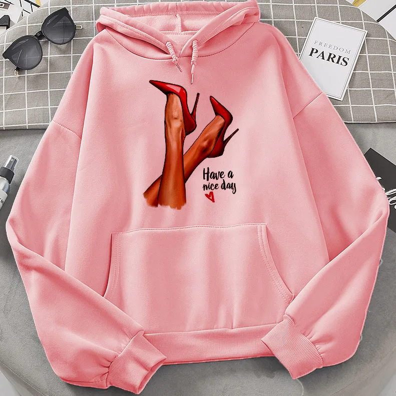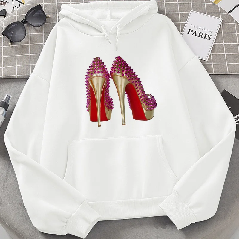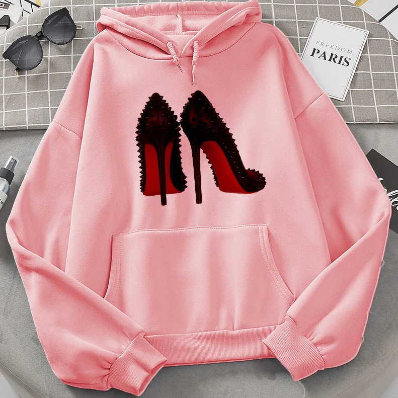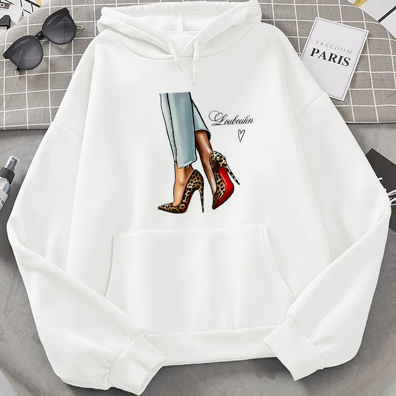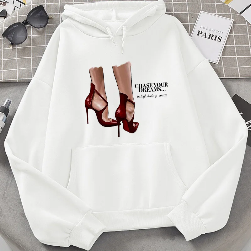 Женская толстовка с капюшоном и принтом, на высоком каблуке