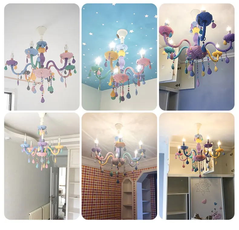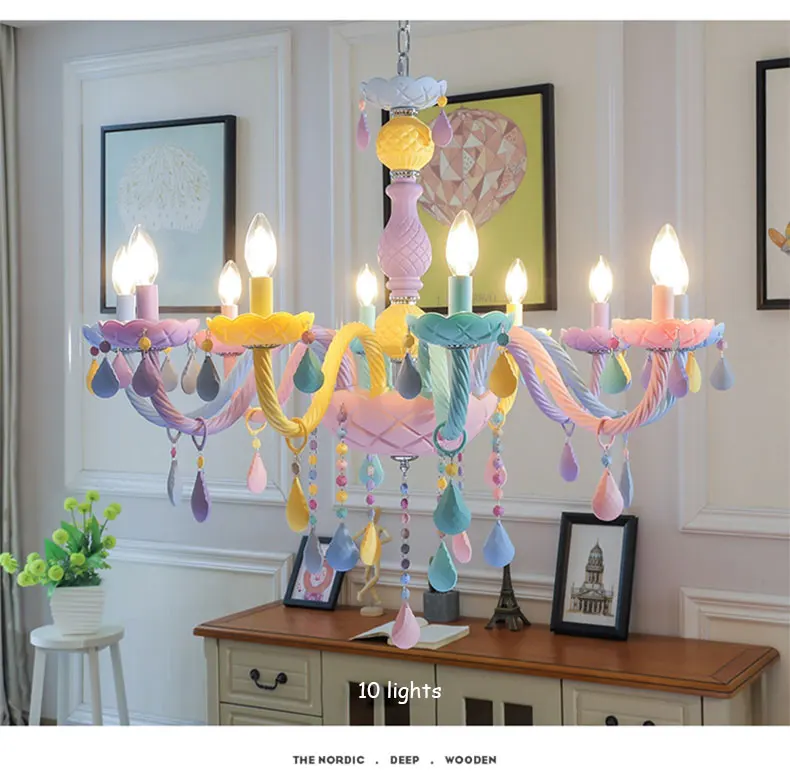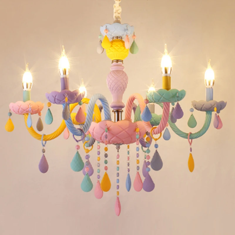 Радужная хрустальная люстра европейские свечи люстры ресторан спальня детская комната американская девушка принцесса лампы