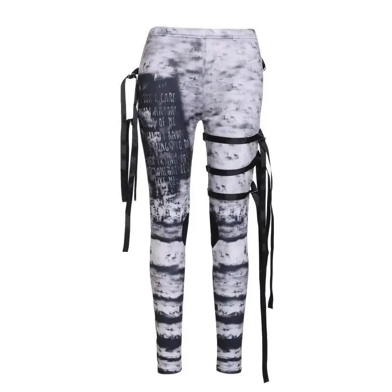 Женские сетчатые брюки Goth в готическом стиле, облегающие брюки с надписью и дырками, уличные трендовые брюки в стиле панк, брюки в готическом стиле