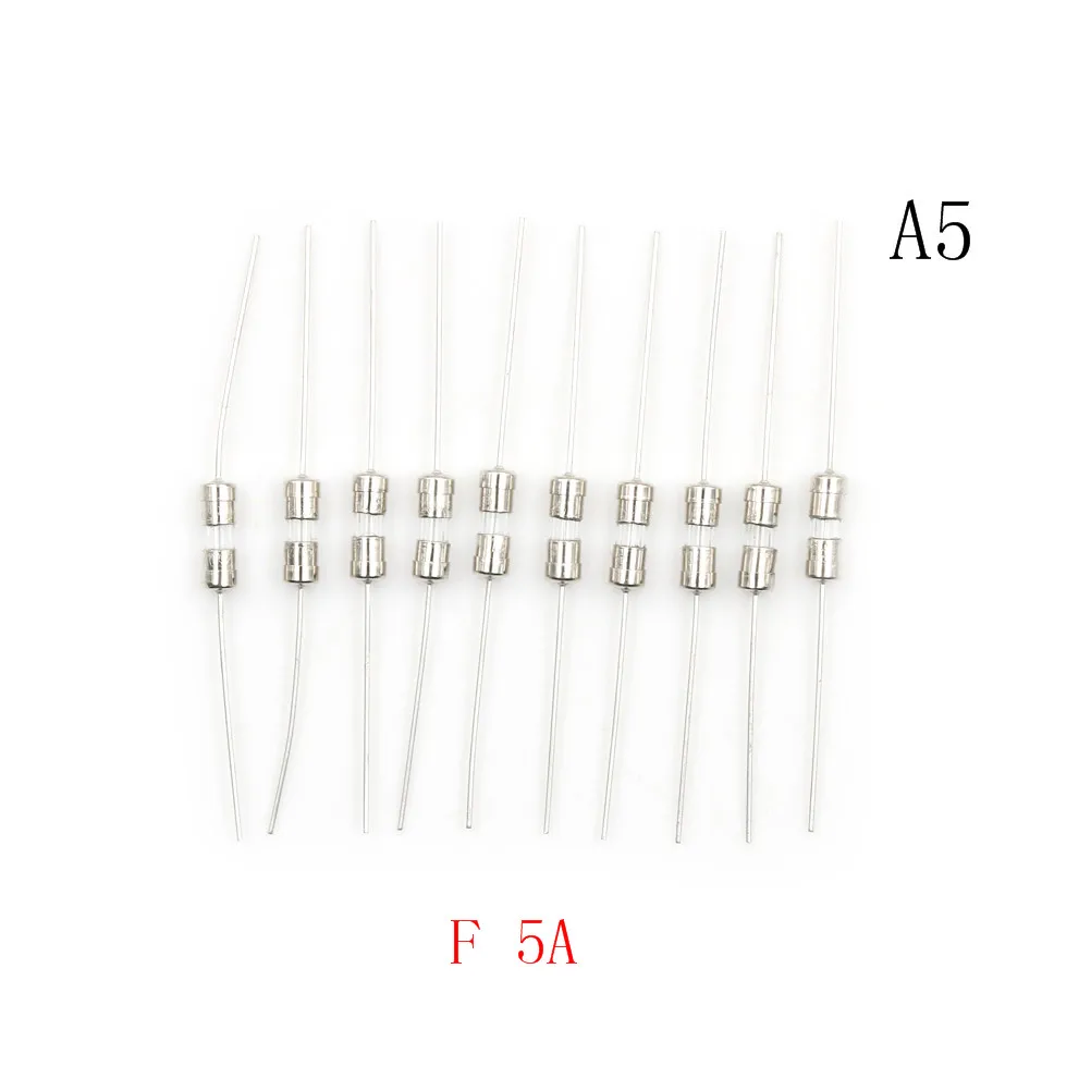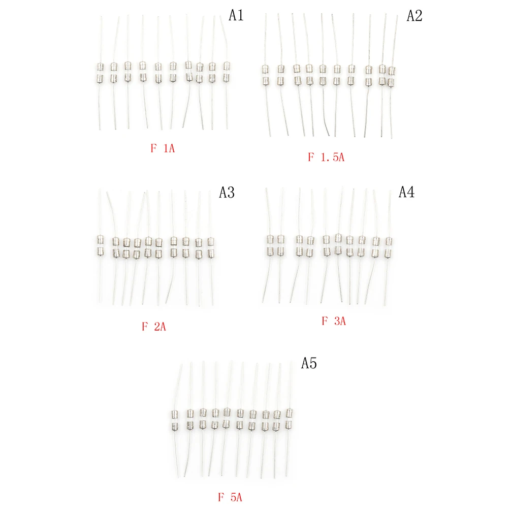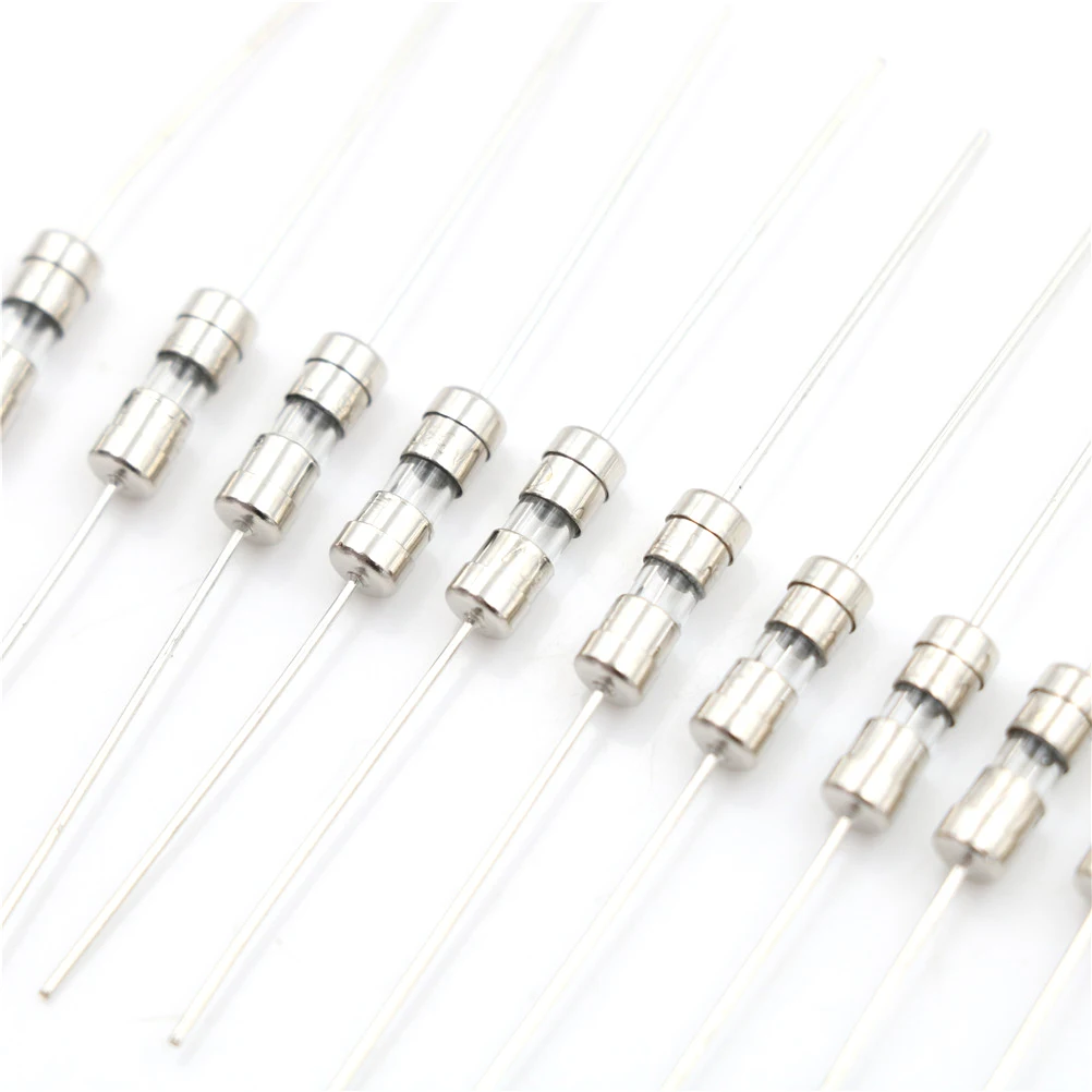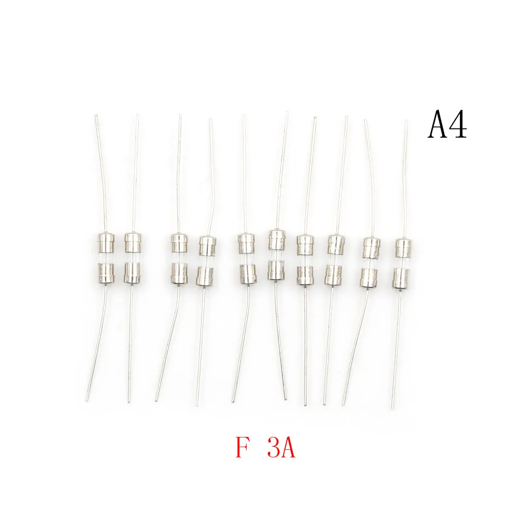 10 шт.лот 3,6*10 мм двойной Железный колпачок Осевой плавкий стеклянный предохранитель со свинцовым проводом смешанный набор 250 В 1A1.5A2A3A5A