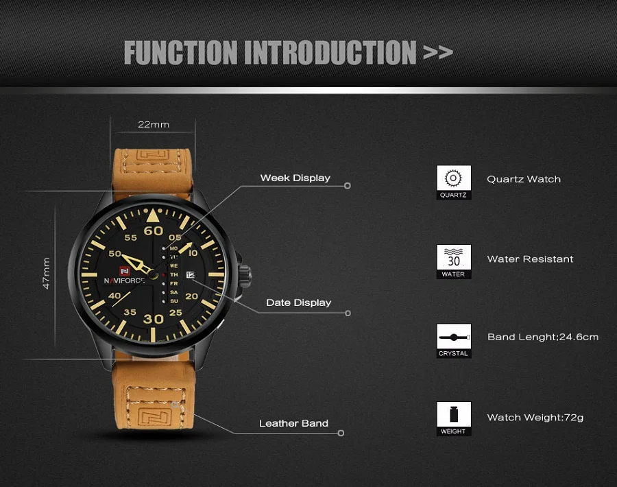 Часы наручные NAVIFORCE Мужские кварцевые, роскошные Брендовые повс...
