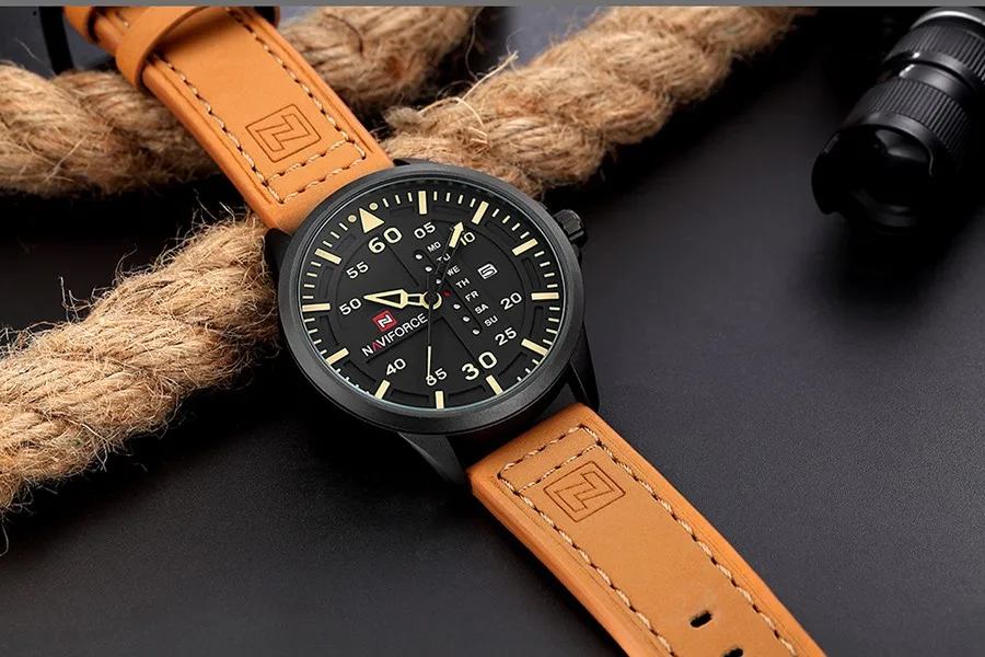 Новинка 2021, оригинальные модные мужские часы NAVIFORCE, спортивные водонепроницаемые кварцевые наручные часы, мужские повседневные часы с кожаным ремешком, мужские часы