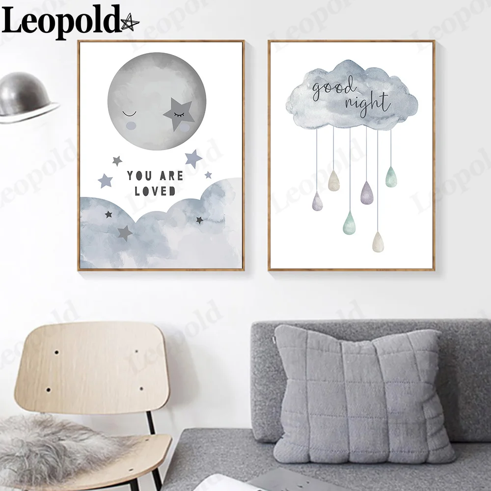 Современный мультфильм холст постер хорошая ночь облако Луна Звезда картина стены искусства Киндер...