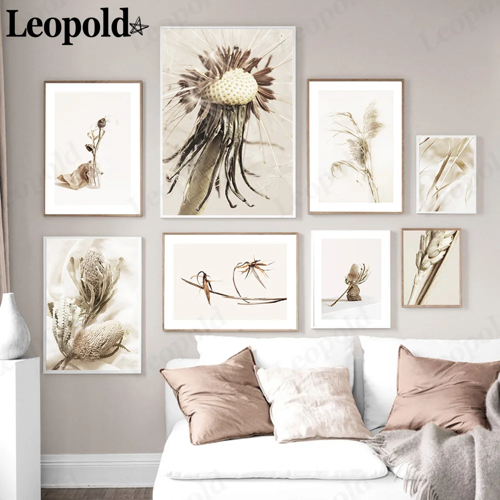 Простой высушенный цветок растение Холст плакат Одуванчик сухая Пшеница плакат бежевая трава W...
