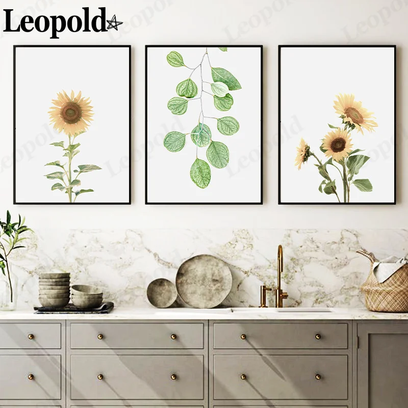 Современный минималистичный растительный холст постер Подсолнух зеленый Растительный рисунок настенное искусство нет...