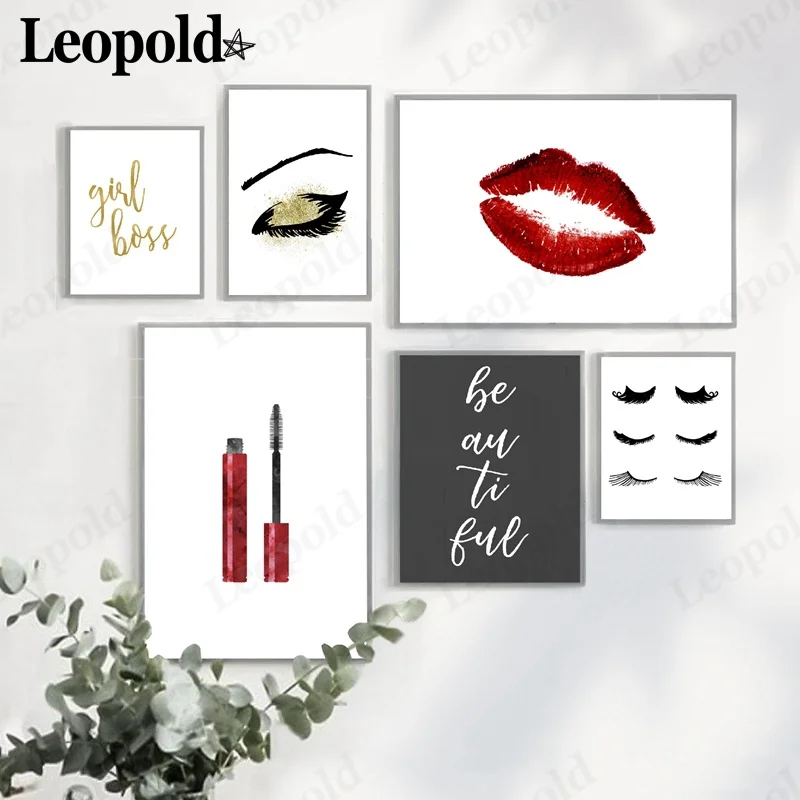 Современная мода косметика холст постер ресницы кисти губы брови накладные ресницы...