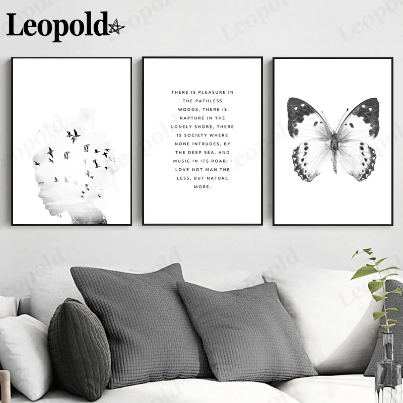 Абстрактный эскиз персонажа холст постер черно-белый простой бабочка птица...