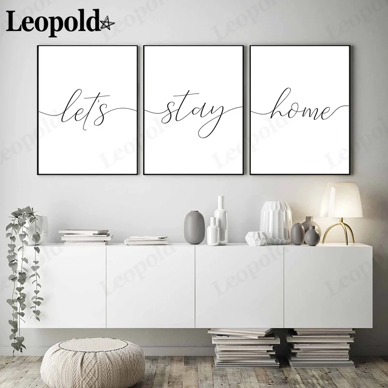 Скандинавский минималистичный алфавит Холст Постер Черный и белый давайте оставаться дома боль...